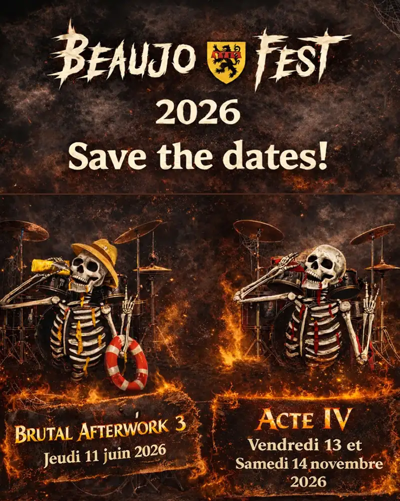 Nous étions au Rock’n’eat mercredi 28 janvier au soir pour le tremplin de l’édition 2026, quand après le deuxième set, le bienveillant dictateur Micka (président du Beaujo’Fest) a annoncé les dates pour l’édition 2026 du Brutal Afterwork ainsi que des deux jours du festival annuel Beaujo’Fest qui aura sa quatrième édition cette année, confirmant la dynamique enclenchée ces dernières années !