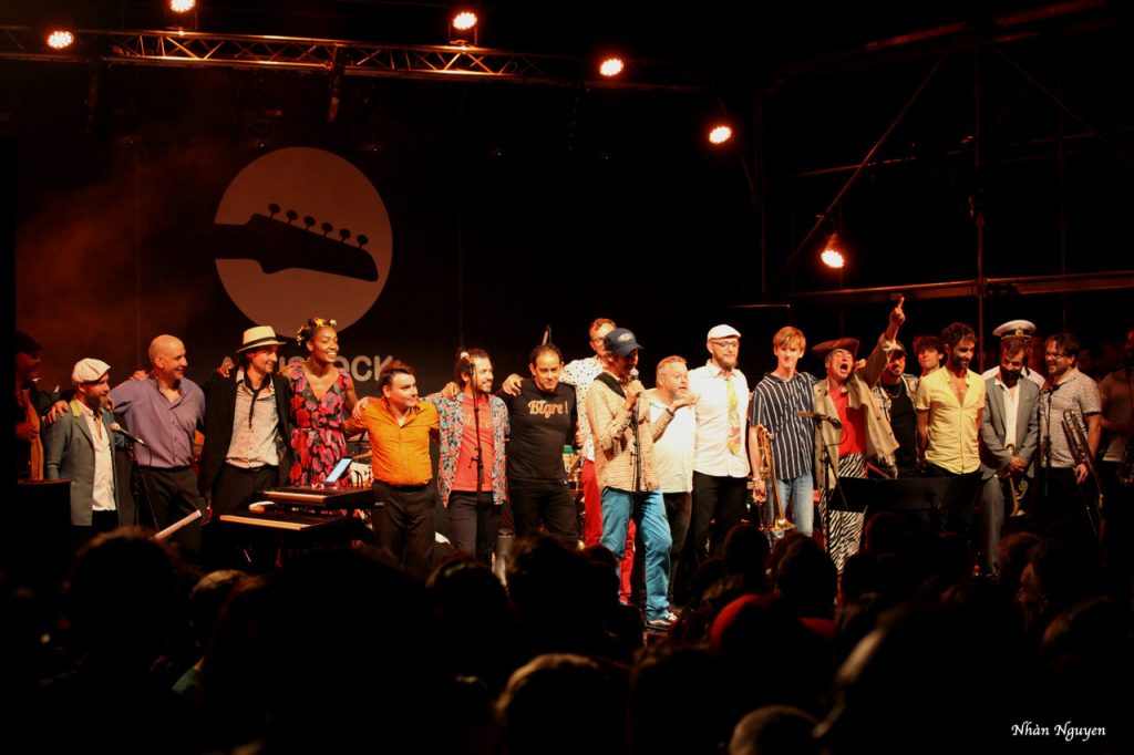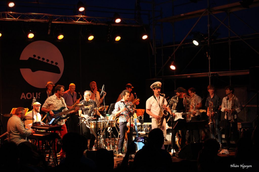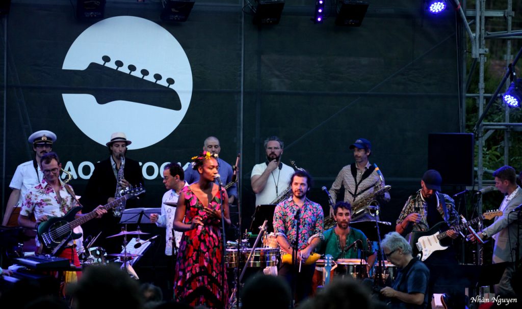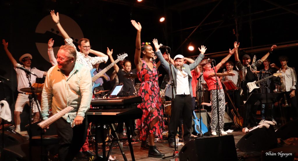 Brigre ! nous accueille d’abord en douceur avec des reprises de Françoise Hardy et d’Édith Piaf par la douce et puissante voix de Célia Kaméni. Mais ce n’était que l’introduction, car emporté par plus de vingt-trois musiciens qui se sont défoulés pour satisfaire le public de toutes générations qui commençait à envahir l’espace scénique. Il est bon de voir les cheveux poivre et sel, voire plus, frapper dans les mains et se trémousser avec ceux qui pourraient être leurs petits enfants ! Sous un ciel de pleine lune à Aouste-sur-Sye, avec Roche Colombe en fond, le rythme s’accélère pour aller de soul au funk beat par l’arrivé de Juan Rozoff ! même latino pour faire lever le public qui a dansé jusqu’à la fin du concert !