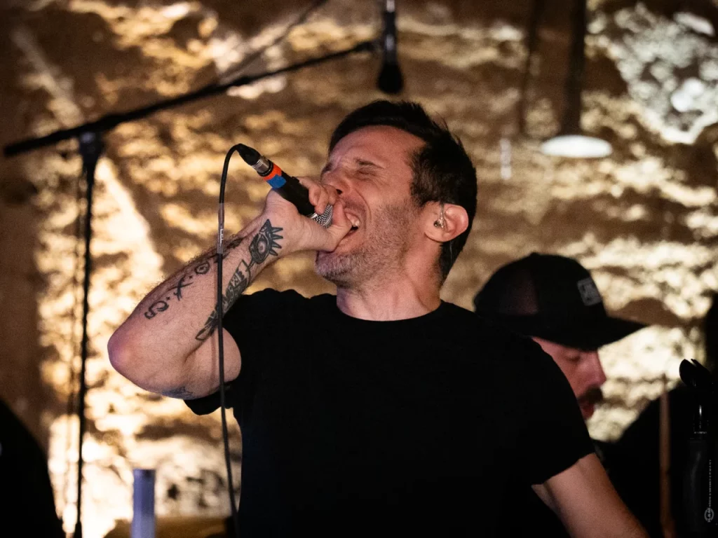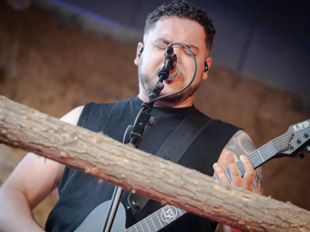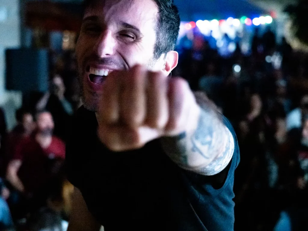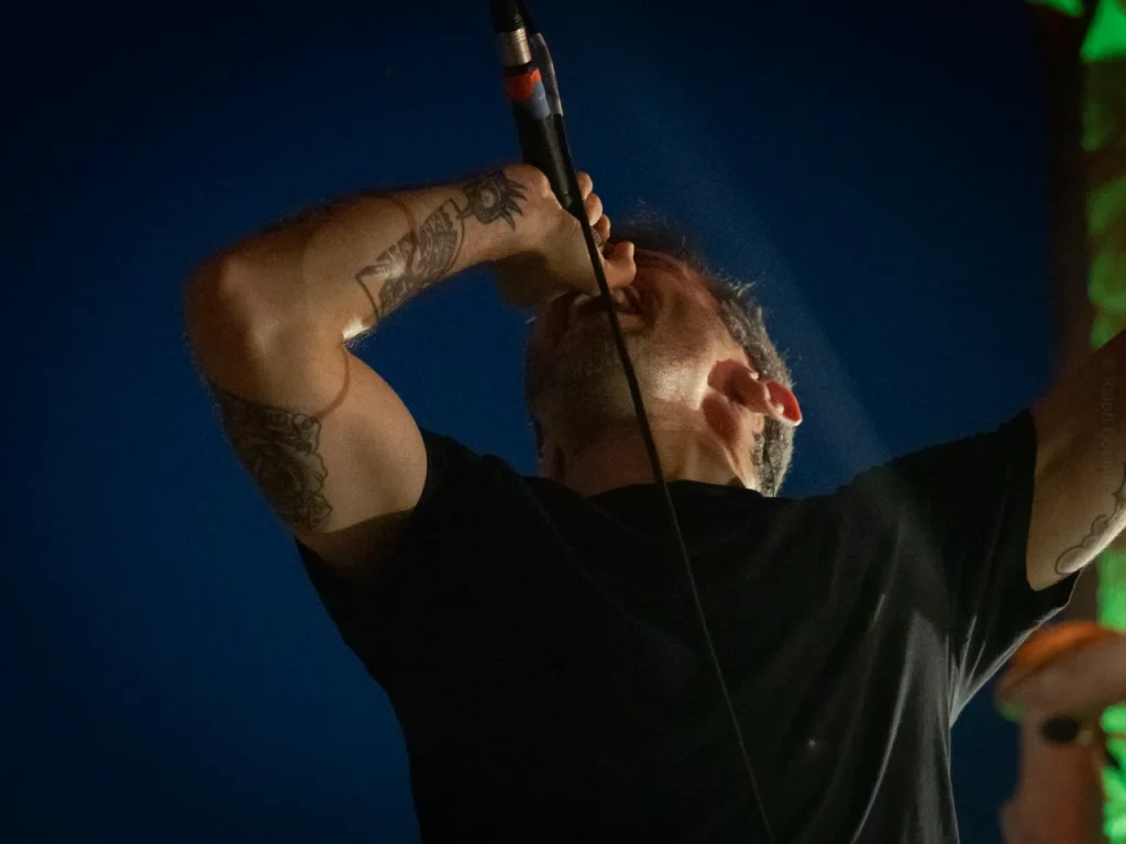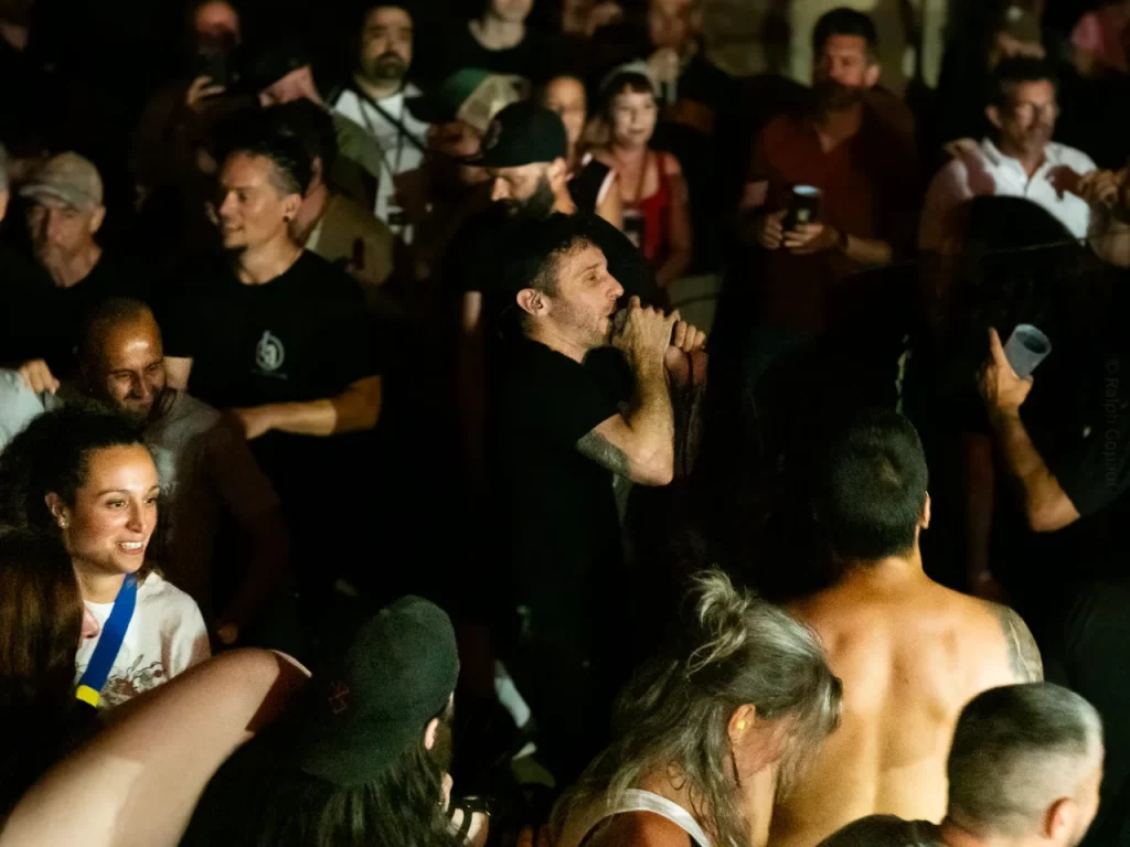 Il est 22 h 08 lorsque TARLD attaque ! Elio lance : « Welcome to the party ! » Puis durant le premier titre, il descend de la scène sur le bar situé juste en dessous puis saute dans le pit avant de remonter ! Sur la suivante Elio redescend et va jusqu’au ring de catch situé au milieu de la cour ! Il compte bien mettre le feu dans le public même ceux éloignés de la fosse ! Je me suis ensuite laissé porté par la folie du set, du groupe et de la fosse quand, à 22 h 48, c’est déjà l’heure de la dernière chanson. « Vous êtes beaux et vous êtes fous ! » puis ils descendent cette fois tous (sauf le batteur, forcément) et organisent un Circle Pit avec Elio au centre !! Malgré un petit souci technique sur ce titre final (c’est ça quand on tire un peu trop sur les câbles XLR pour faire les fous), ils reprennent le titre et s’organise alors un Wall Of Death spontané sur No Place Like Home. « Merci les amis et à bientôt ! ». Pour conclure, Elio finit en slam porté par la foule. Quelle fin magistrale !! Elio aura passé beaucoup de temps au cœur de la fosse pour le plus grand bonheur du public présent (et le mien, il faut l’avouer).