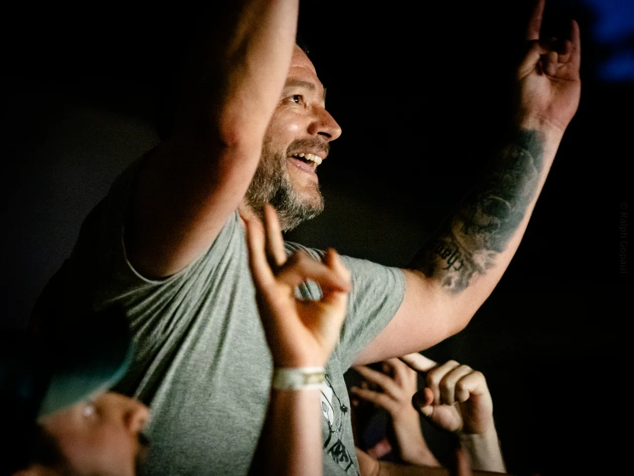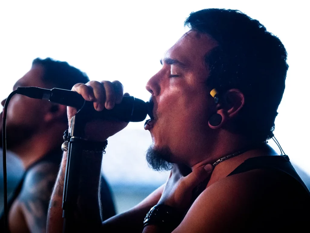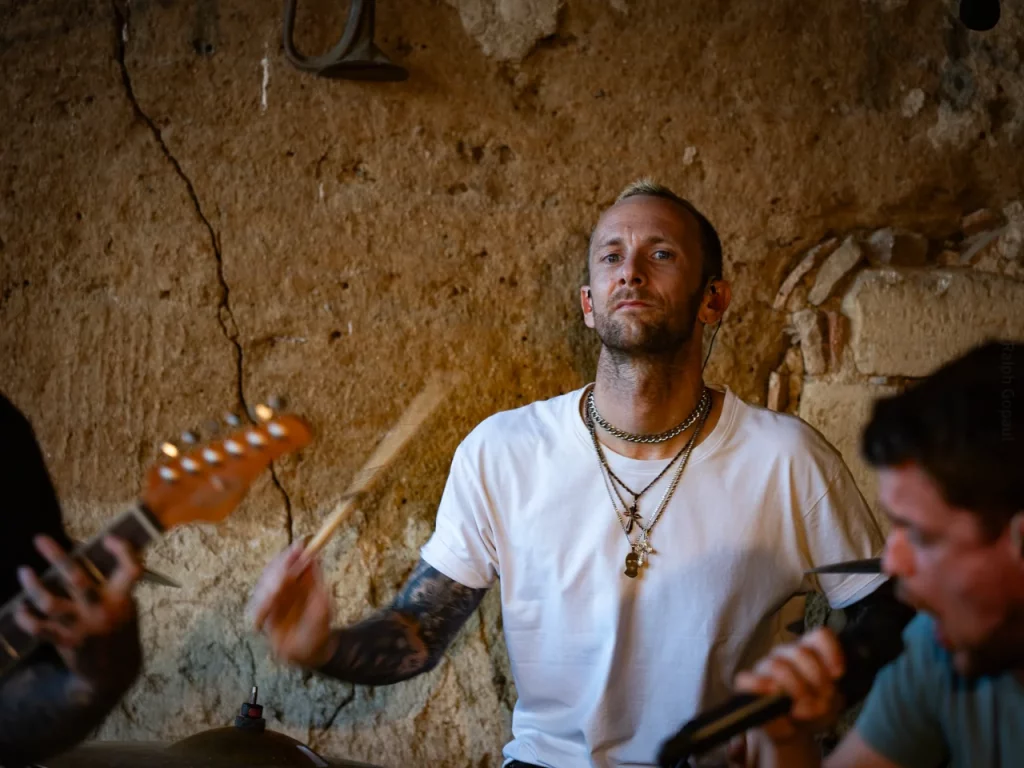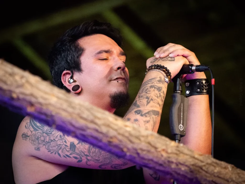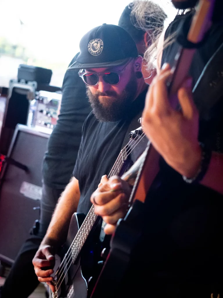 Il est 22 h 08 lorsque TARLD attaque ! Elio lance : « Welcome to the party ! » Puis durant le premier titre, il descend de la scène sur le bar situé juste en dessous puis saute dans le pit avant de remonter ! Sur la suivante Elio redescend et va jusqu’au ring de catch situé au milieu de la cour ! Il compte bien mettre le feu dans le public même ceux éloignés de la fosse ! Je me suis ensuite laissé porté par la folie du set, du groupe et de la fosse quand, à 22 h 48, c’est déjà l’heure de la dernière chanson. « Vous êtes beaux et vous êtes fous ! » puis ils descendent cette fois tous (sauf le batteur, forcément) et organisent un Circle Pit avec Elio au centre !! Malgré un petit souci technique sur ce titre final (c’est ça quand on tire un peu trop sur les câbles XLR pour faire les fous), ils reprennent le titre et s’organise alors un Wall Of Death spontané sur No Place Like Home. « Merci les amis et à bientôt ! ». Pour conclure, Elio finit en slam porté par la foule. Quelle fin magistrale !! Elio aura passé beaucoup de temps au cœur de la fosse pour le plus grand bonheur du public présent (et le mien, il faut l’avouer).