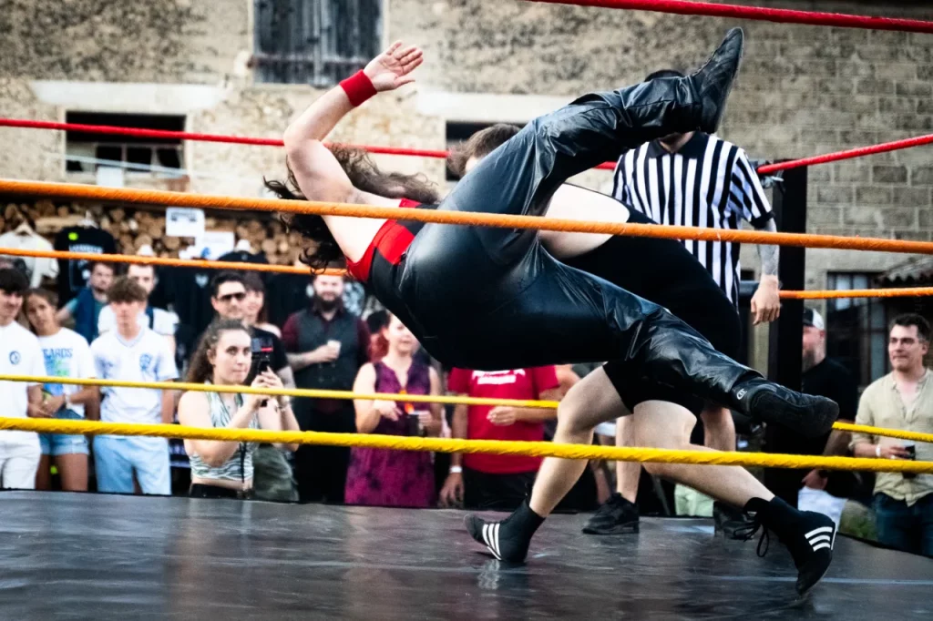 À 20 h 13 du catch est annoncé en interscène ! C’est en effet la surprise annoncée il y a peu par les organisateurs. Ce fut une amusante façon de passer le temps avec pas moins de six catcheurs, un arbitre et un maître de cérémonie, en plus de nous sustenter avec les burgers locaux pendant ce temps.