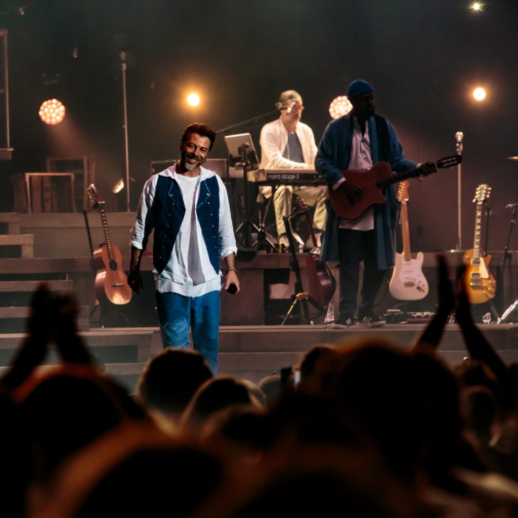 Nous étions, le lundi 19 octobre 2021, sur Lyon, très précisément à la Halle Tony Garnier, afin de couvrir le concert que Christophe Maé y donnait. Après avoir récupéré nos précieux sésames, nous avons rejoint l’immense espace où se trouvaient chaises et gradins et où le public, somme toute assez nombreux, commençait à arriver pour remplir ceux-ci. Une fois tout ce petit monde installé, place au spectacle !