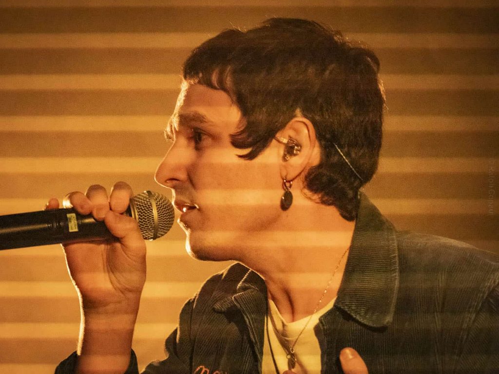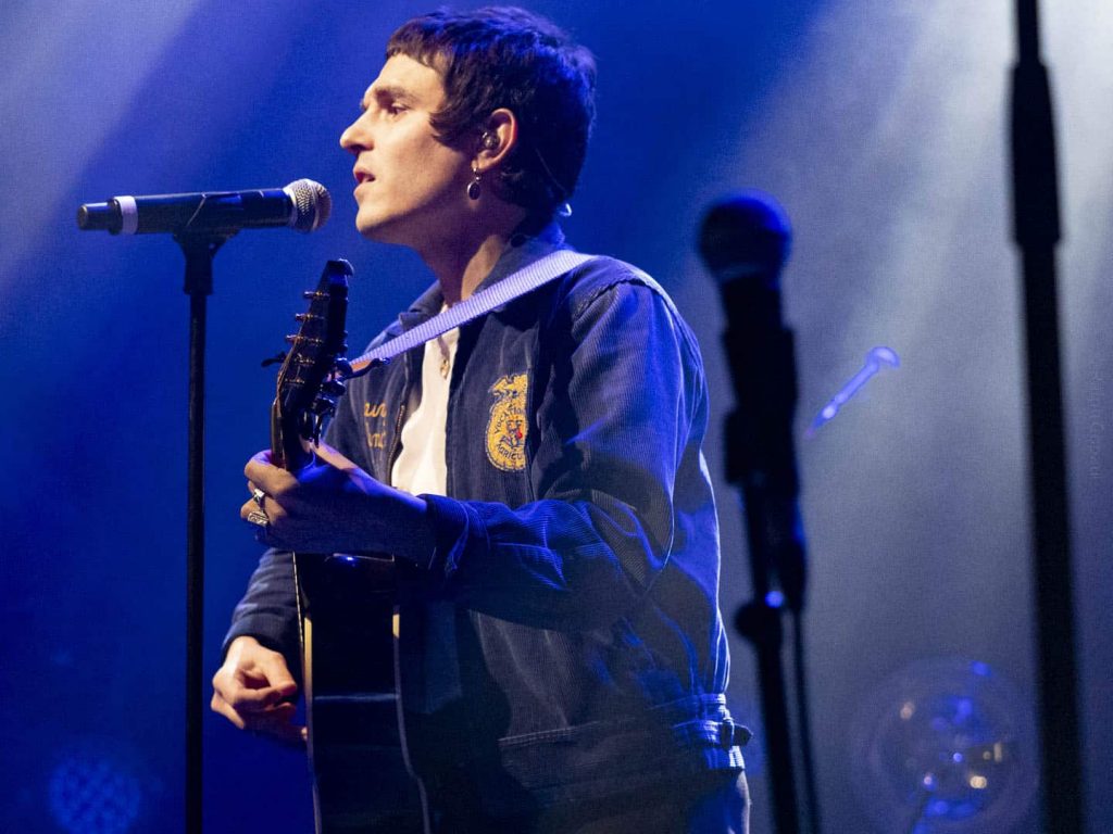Blond, qui est brun, attaque à 20 h 15 tapante, seul avec sa guitare électrique et une bande son électro pour son premier titre De l’air, durant lequel il se présente. En deuxième ça sera le titre Vertige. Il prend une guitare sèche et nous explique que c’est sa première fois qu’il chante ses chansons à Lyon. La chanson parle de comment ça peut être compliqué de s’assumer comme on est, lui est très sensible : Madame. Une chanson jouée voix et guitare seule. Il demande au public de chantonner le refrain de la suivante avec lui. Il s’agit d’un titre Électro et voix : Les bonnes manières. Ensuite, nous avons droit a Été brûlant. La suivante parle de dispute de couple : Même pas peur. S’ensuivent des applaudissements fournis avant la dernière. Il exprime ses remerciements à l’équipe technique, la salle, Adé, le public. Il nous explique pourquoi Blond alors qu’il est brun ? C’est son vrai nom : il s’appelle Antoine Blond, tout simplement. La chanson finale est l’inverse de la précédente : quand on a enfin rencontré l’amour et qu’on l’aimera Pour la vie entière !