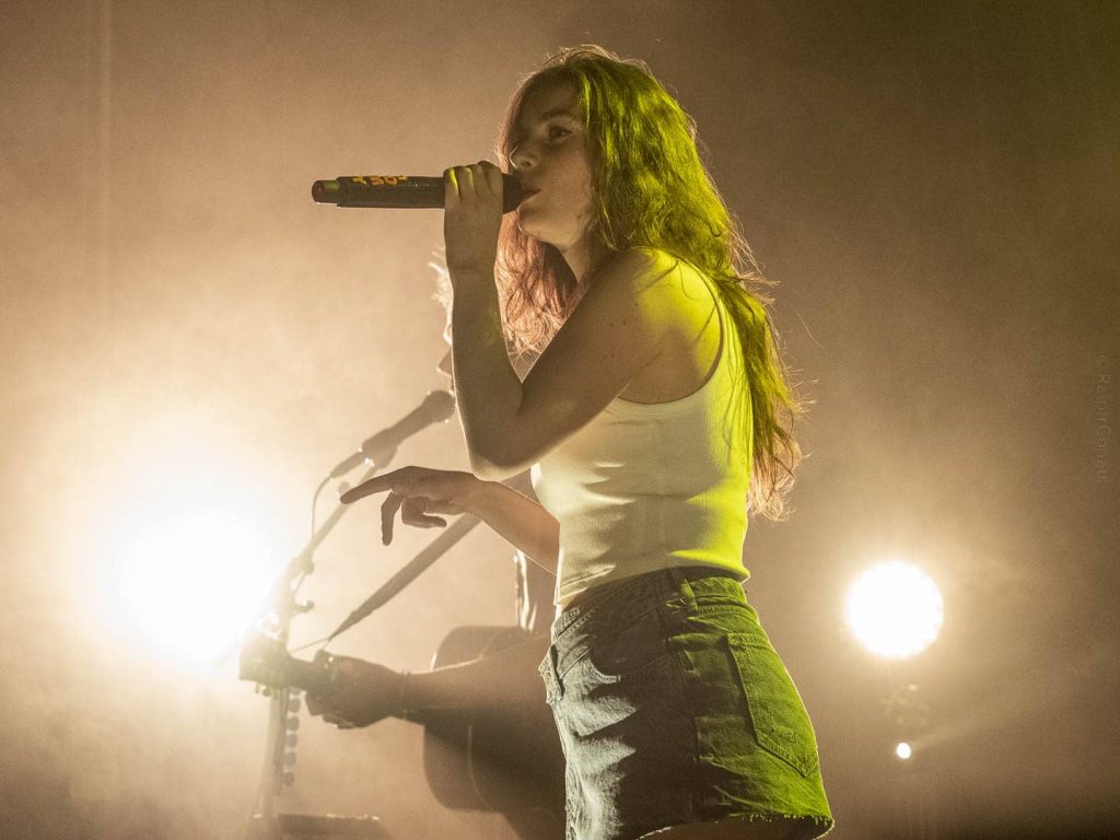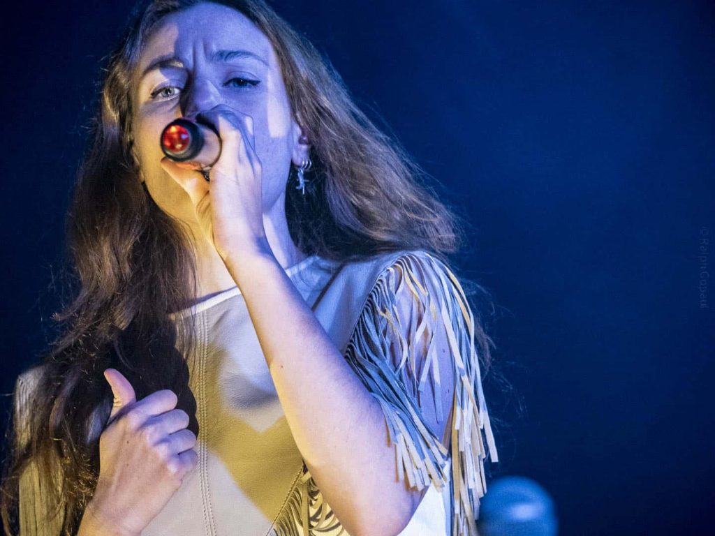 Après un rapide changement de plateau et un petit soundcheck de la part des techniciens, à 21 h 06 Adé arrive sur scène avec ses 4 musiciens sur le titre Et Alors ! qu’elle enchaine avec Sunset. Adé parle au public et remarque la diversité d’âge de la salle. En effet, de nombreux d’enfants sont en effet collés à la scène, et dans la salle des personnes d’âge nettement plus avancé que votre serviteur sont présents également. Nous avons ensuite droit à