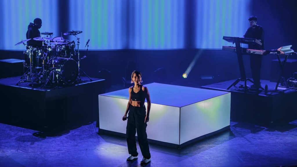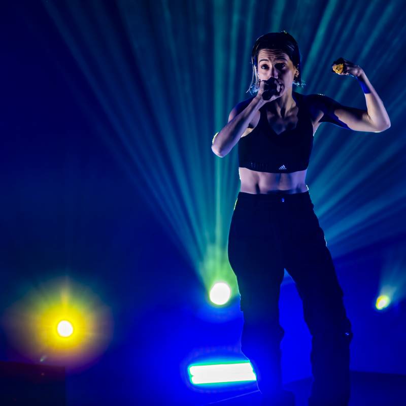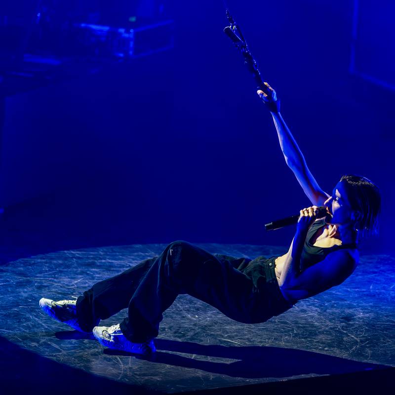 Et c’est l’athlétique Aloïse Sauvage qui est alors montée sur scène. Quand je dis athlétique, je ne mâche pas mes mots, j’irai même jusqu’à dire acrobatique, vu qu’elle nous a livré ce soir un numéro de haute voltige ! En effet, elle a passé le plus clair de son temps perchée sur un parallélépipède rectangle à chanter, danser, voler… Les chorégraphies étaient modernes, autant que les chansons de son second album qu’elle défendait dans ce spectacle. La scénographie était bien agencée et utilisée au mieux. Aloïse a fini par s’envoler dans les airs, tractée par un câble qui l’a menée au firmament ! Elle a également présenté deux ou trois titres de son premier album qu’elle n’avait pas pu défendre puisque sorti juste quand le Covid-19 a débarqué. C’était un moment magnifique. Respect à Aloïse Sauvage qui se donne à fond lors de son show !
