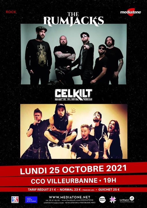Le lundi 25 octobre 2021, nous voilà de nouveau rendu au CCO Jean-Pierre Lachaize à Villeurbanne en banlieue de Lyon (imbriquée en fait) pour un concert organisé par Mediatone (association Lyonnaise fort bien connue). Celui-ci a eu pour affiche deux quintettes rock celtique : Celkilt, les locaux de l’étape, et les Australiens de Sydney, The Rumjacks !