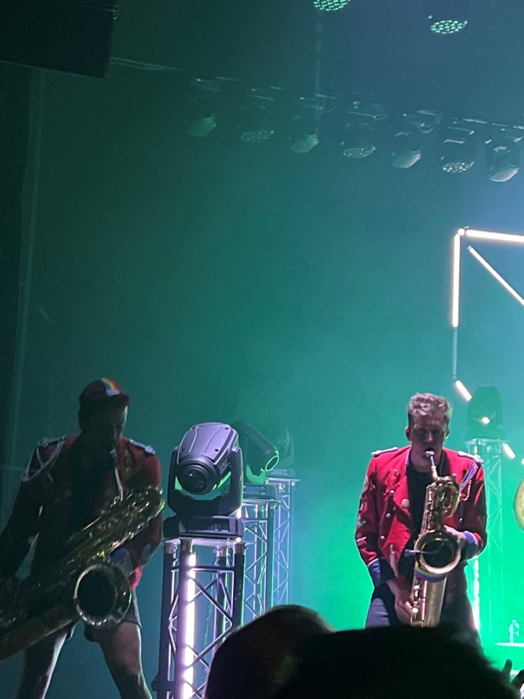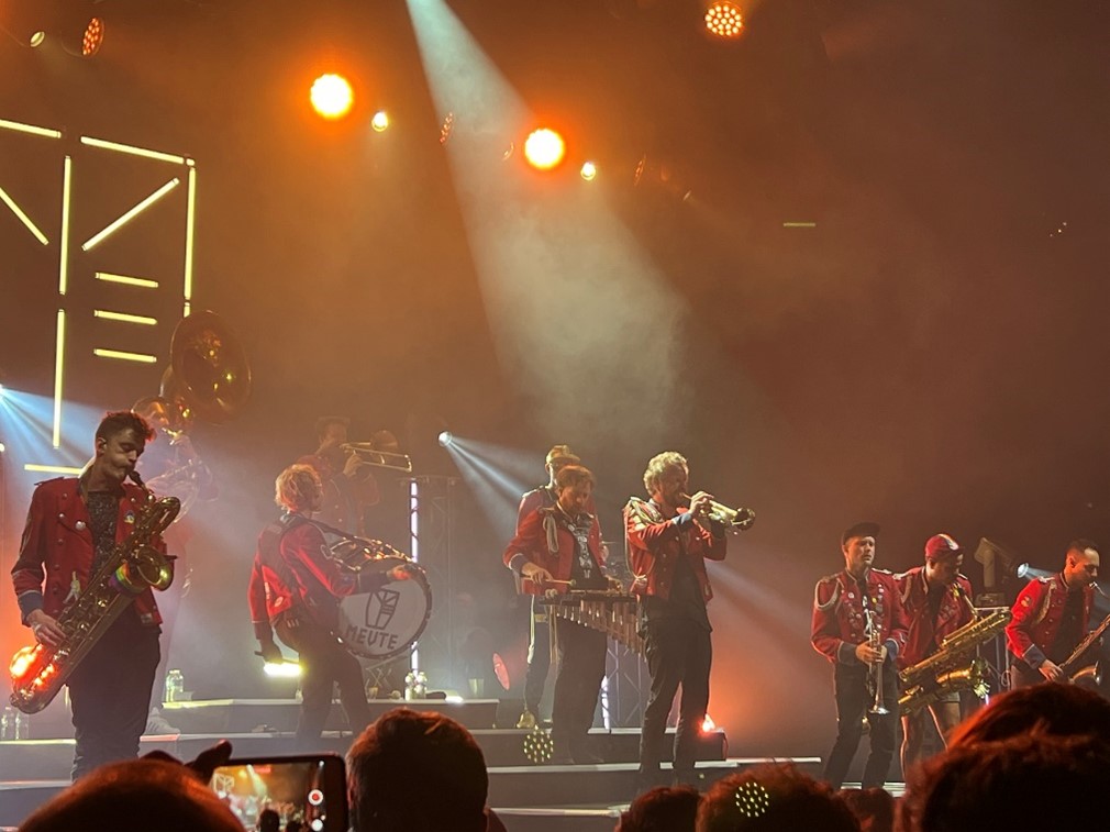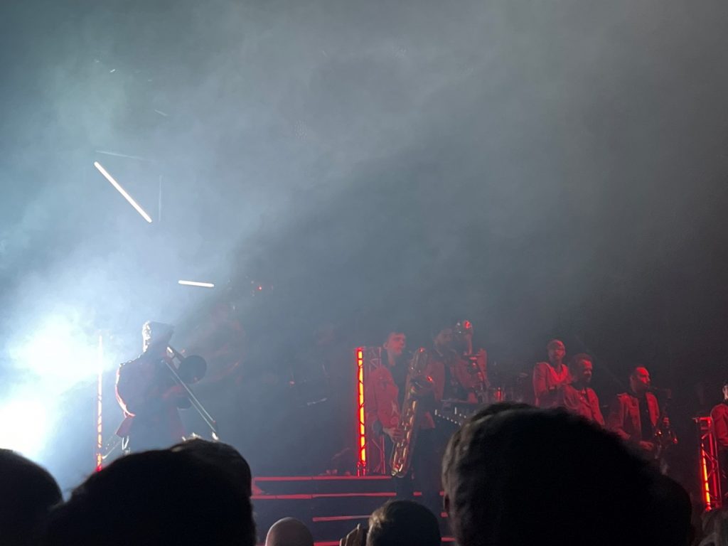 Un petit souci administratif a, à mon grand regret, retardé mon entrée dans la salle de concert et m’a empêché de découvrir Yor. D’après ce que j’ai pu écouter de sa production ( soundcloud ), c’est de la bonne électro, avec juste assez de BPM pour se mettre en jambe et pas trop pour préserver son énergie. Parfait pour accueillir la fanfare allemande !