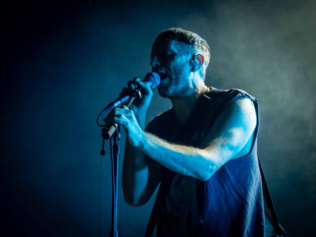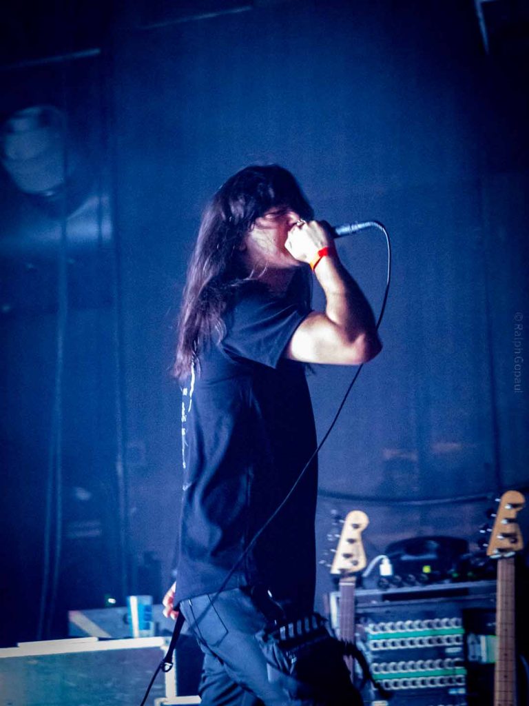 20 h, Author&Punisher ouvre le bal et invite les premiers spectateurs à se rapprocher de la scène avec son Metal industriel. Le groupe venant de San Diego est mené par l’ingénieur de formation Trisant Shone. Le talent de ce dernier est de fabriquer lui-même ses instruments électroniques, autant dire que chez lui la musique commence avec un fer à souder. Le duo qui a la chance de produire des albums depuis 2005 a suffisamment maturé pour envelopper la grande salle du Transbo d’une mélodie ambiante calme et puissante, de quoi faire hocher la tête du public en rythme pendant que le reste des retardataires arrive. Tristan, son impressionnante machine et son guitariste ont réussi à nous faire vibrer pendant 50 minutes avant de laisser la place aux techniciens qui préparent la scène pour les suivants.