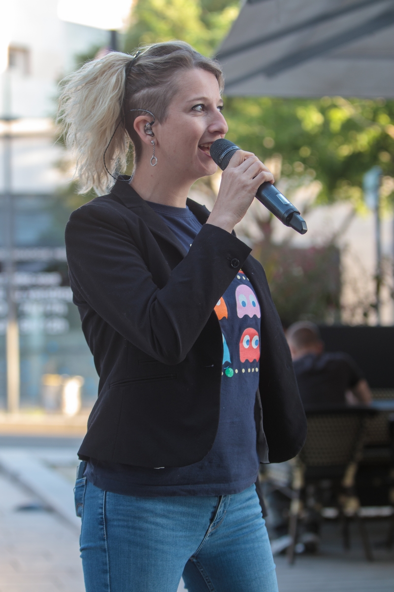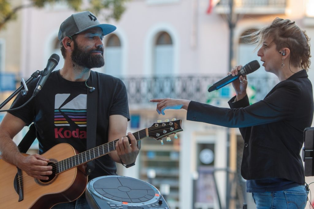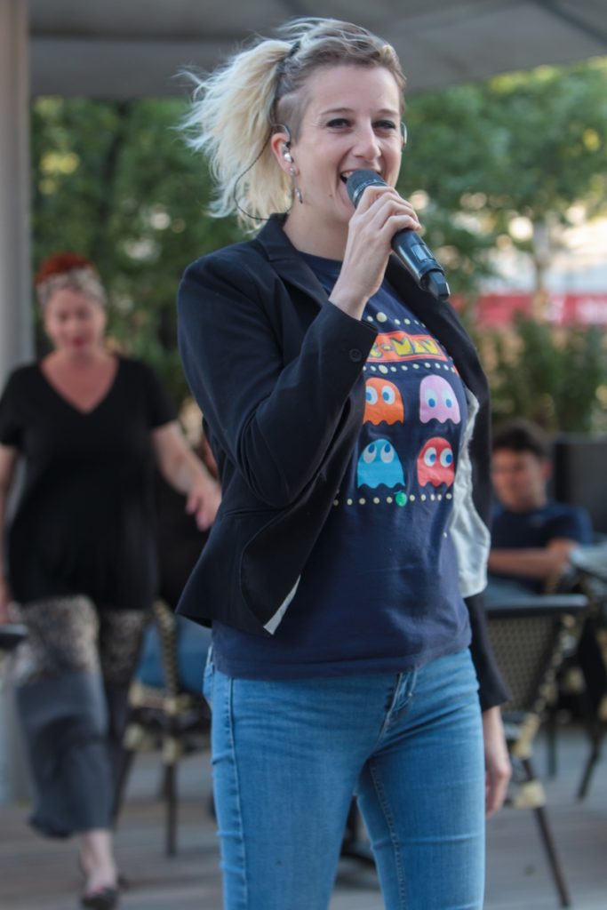Pour cette première, c’est le duo Salt & Pepper qui a eu pour tâche d’animer la soirée. Ils nous ont proposé, sur la petite scène improvisée pour l’occasion, une multitude de reprises d’artistes francophones et anglophones. Ce fut pour nous une belle découverte. La voix puissante de Coralie, la chanteuse, alliée aux instruments de son partenaire de scène, nous a subjugués. Ils ont revisité des standards internationaux avec brio.