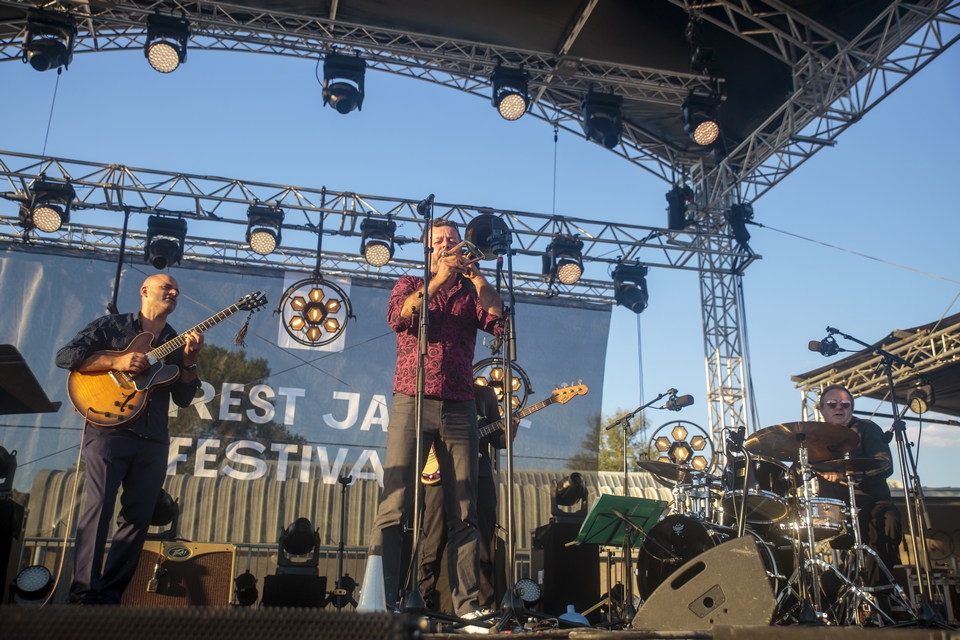 Nous voici donc, le mercredi 3 août 2022, sur le chemin qui mène à l’espace Soubeyran où nous attend la quatrième soirée du Crest Jazz festival, laquelle est placée sous l’égide de la SPEDIDAM. Après une agréable fin d’après-midi à profiter du concours international, nous passons donc le pont Mistral qui permet de franchir la rivière Drôme afin de rallier le village du festival qui nous attend les bras ouverts. Cette soirée est donc financée par la SPEDIDAM et propose pas moins de trois concerts. Elle est intitulée « à cordes et à cuivres ».