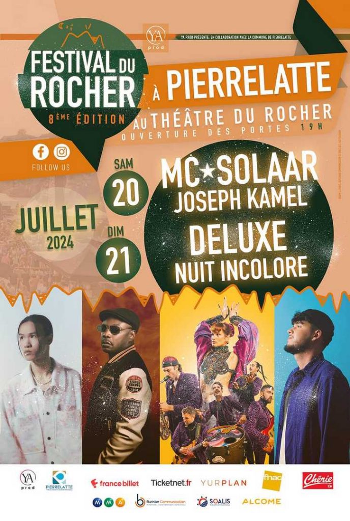 Le Festival du Rocher, pour votre plus grand plaisir, nous a dévoilé la programmation de son édition 2024. Sur deux soirées, les samedi 20 et dimanche 21 juillet, des 19 heures, elle nous offrira quelques concerts bien sympathiques. C’est le Théâtre du Rocher, à Pierrelatte, dans la Drôme, qui accueillera l’événement. Et il va vibrer au cœur de la nuit.