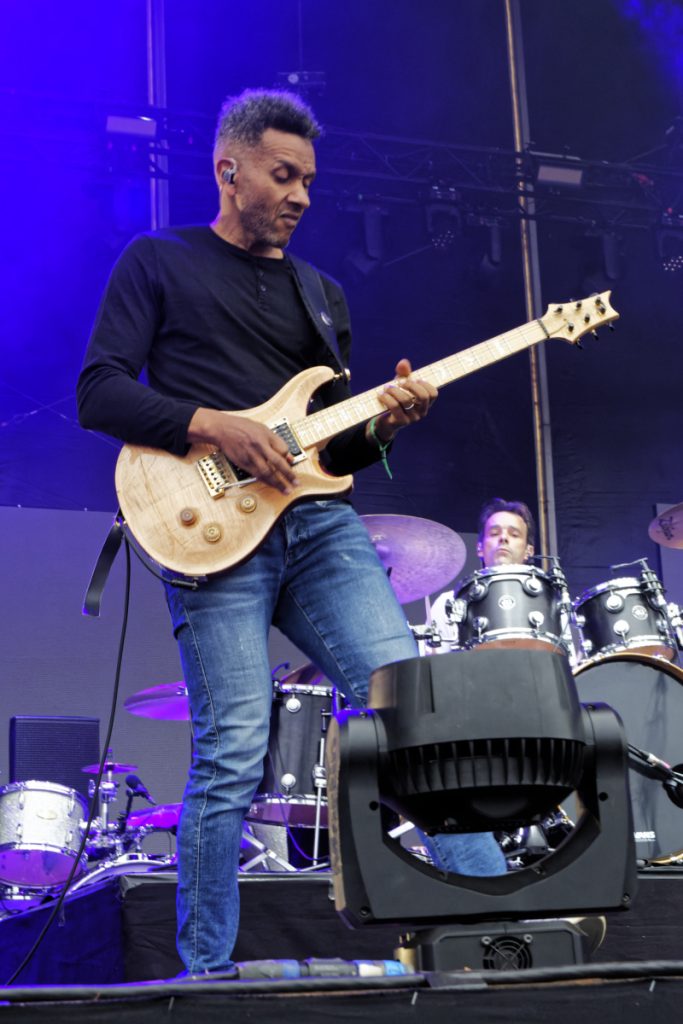 Mauvaise nouvelle : peu avant 20h, on nous apprend que le concert de Gaelle Buswel n’aura pas lieu car il faut rattraper le retard. C’est une grande déception pour ses fans. À 20h, entrée en matière avec le groupe de rock progressif Ange. Fondé en 1969 le groupe est aujourd’hui composé du Chanteur : Christian Décamps, du claviériste : Tristan Décamps, du guitariste : Hassan Hajdi, le bassiste : Thierry Sidhoum, du batteur : Benoît Cazzulini. Les cinq musiciens ont échauffé l’audience en interprétant des titres de leurs nombreux albums réalisés durant leurs cinquante-deux années de carrière. Je retiens surtout la très belle reprise du titre de Jacques Brel : Ces gens là.