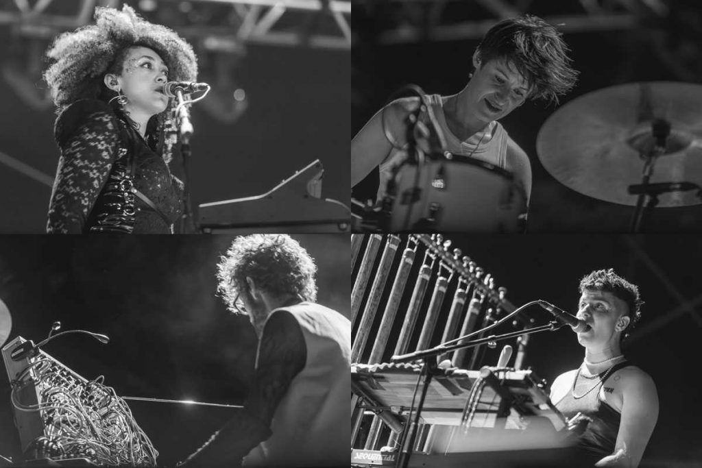 Lucie Antunes est une artiste, compositrice et percussionniste fervente d’une musique électronique engagée et minimaliste. Elle cultive un univers fait d’exigence et de radicalité. Plongée dans le noir, elle évolue dans un ambiance à la fois tribale et mystique, avec un prime titre LNM, un cri de joie libérateur. On se croirait dans un technival berlinois. La transe emmène le spectateur et interroge au plus profond de nous-même. Une belle surprise.