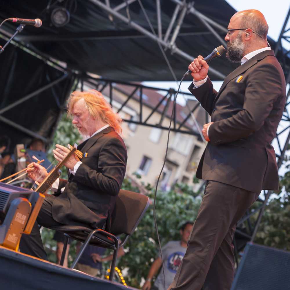 Après, place à un moment world music, avec le duo, de nu folk Puuluup. Entre chien et loup, ce duo estonien formé de Rami et Marko a présenté un set incroyable, utilisant des instruments traditionnels de leur pays, la Talharpa, puisant aussi dans des influences à la fois électro, ethniques et de musique africaine. Les thèmes sont multiples, pouvant évoquer aussi bien le ski de fond, que les relations amoureuses dans un même morceau. Les spectateurs ont été ravis de ce duo pouvant alterner la world music et un certain esprit rock n’ roll.