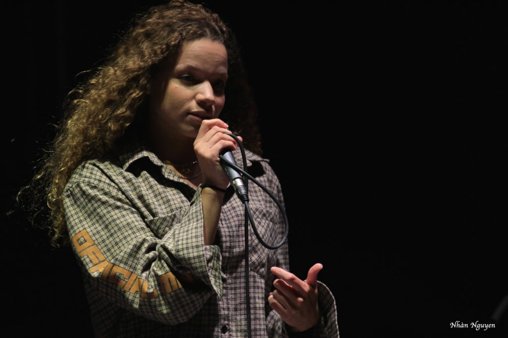 La seconde première partie, c’est à une autre régionale qu’elle est revenue, même si elle est montée à Paris où elle a rencontré Julie Zenatti qui est désormais son « mentor ». Elle nous a proposé un merveilleux tour de chant, plein de vigueur et d’énergie, avec son look « teenager » dans le vent et son vocabulaire teinté de jeunesse.