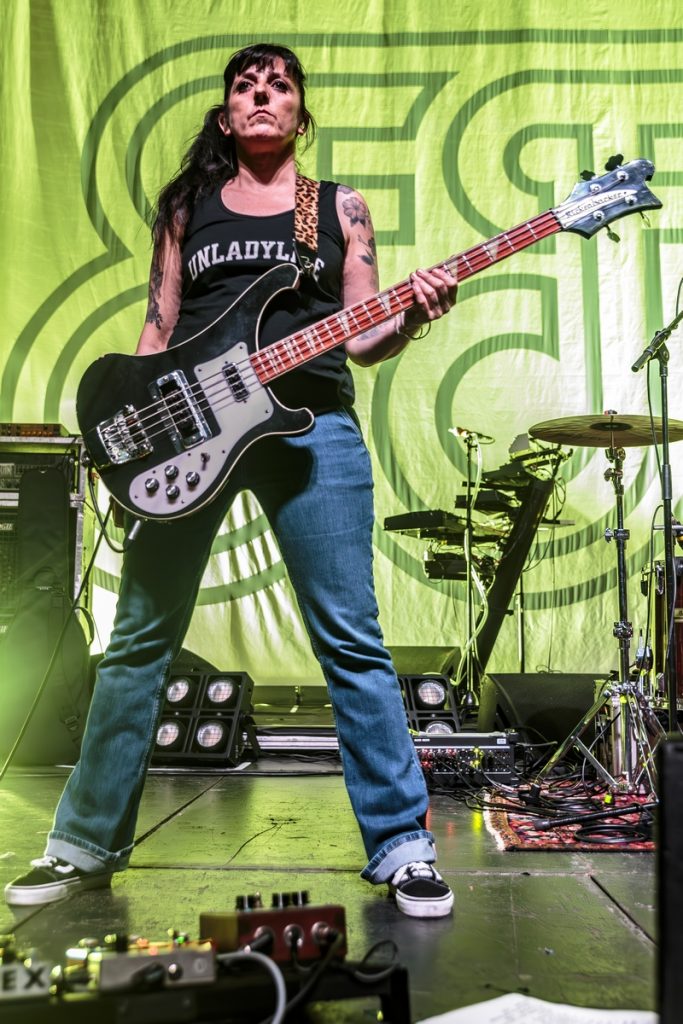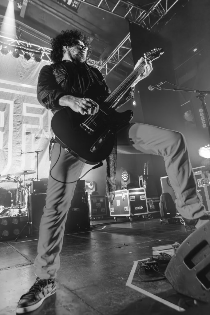 Puis la musique est arrivée. En ouverture, c’est un groupe lyonnais du nom de 111, qu’avait déjà croisé Ralph lors de leur passage dans cette même salle à l’occasion du Ninkasi Musik Lab. C’est à un set d’une énergie rare que nous avons eu droit. La basse, la guitare et la batterie se sont alliées à la voix de la chanteuse (qui maîtrise sa 4 cordes avec brio) pour nous entraîner vers des pulsions fébriles qui nous font nous secouer les tripes avec envie.