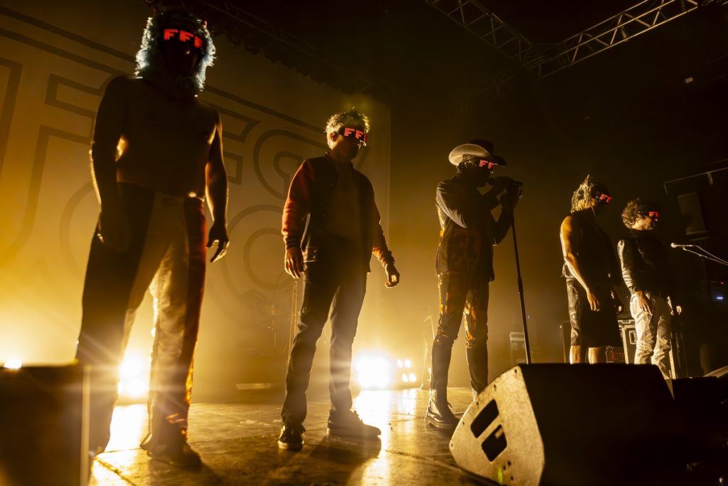 Un moment de folie s’est installé dans la salle. Les cris de joie, les gesticulations, tout était fait par l’assistance pour accueillir les cinq membres de FFF comme il se devait. Ils se sont tous avancés et se sont alignés face à la foule en délire. Il arboraient des lunettes à LED sur lesquelles s’affichaient les initiales de la Fédération française de fonck. Les enceintes en façade envoyaient des watts puissants, les éclairages se lançaient dans un effet stroboscopique haletant. Puis tout a fini par commencer ! Nous avons assisté à un spectacle époustouflant. Les sourires se lisaient sur les visages malgré la pénombre environnante. Les quadra, les quinca, tout le monde était en liesse. Et cette fougue a duré, de bout en bout. Vraiment, c’était un instant merveilleux.
