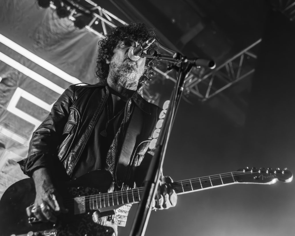 Mais voyons plutôt comment s’est déroulée la soirée. Nous sommes arrivés sur place et avons patienté dans la file d’attente afin de récupérer notre précieux sésame qui nous permettrait d’accéder aux crash-barriers, l‘espace protégé entre scène et public réservé aux photographes, durant les trois premiers titres du concert de l’affiche. Nous avons également pris connaissance des consignes pour la première partie et sommes entrés dans la salle.