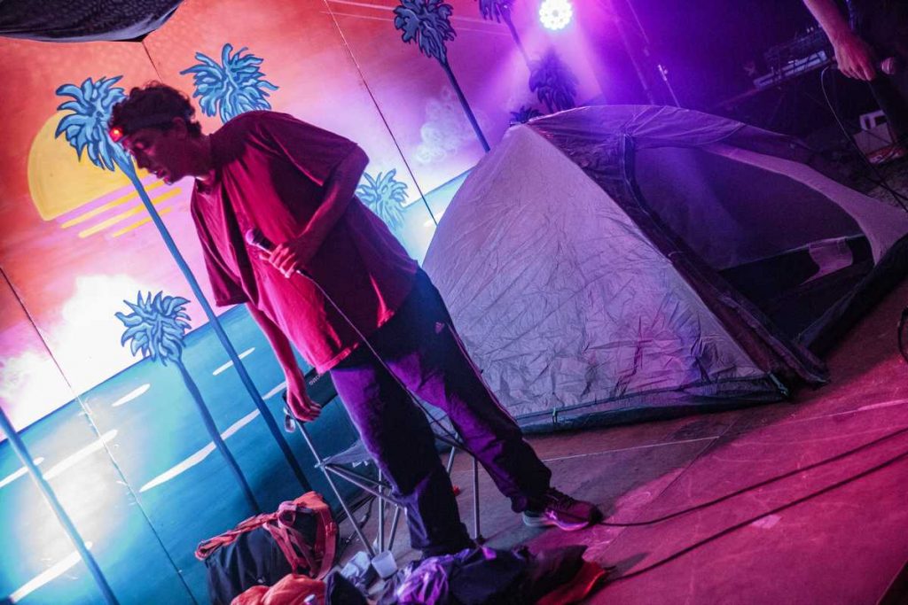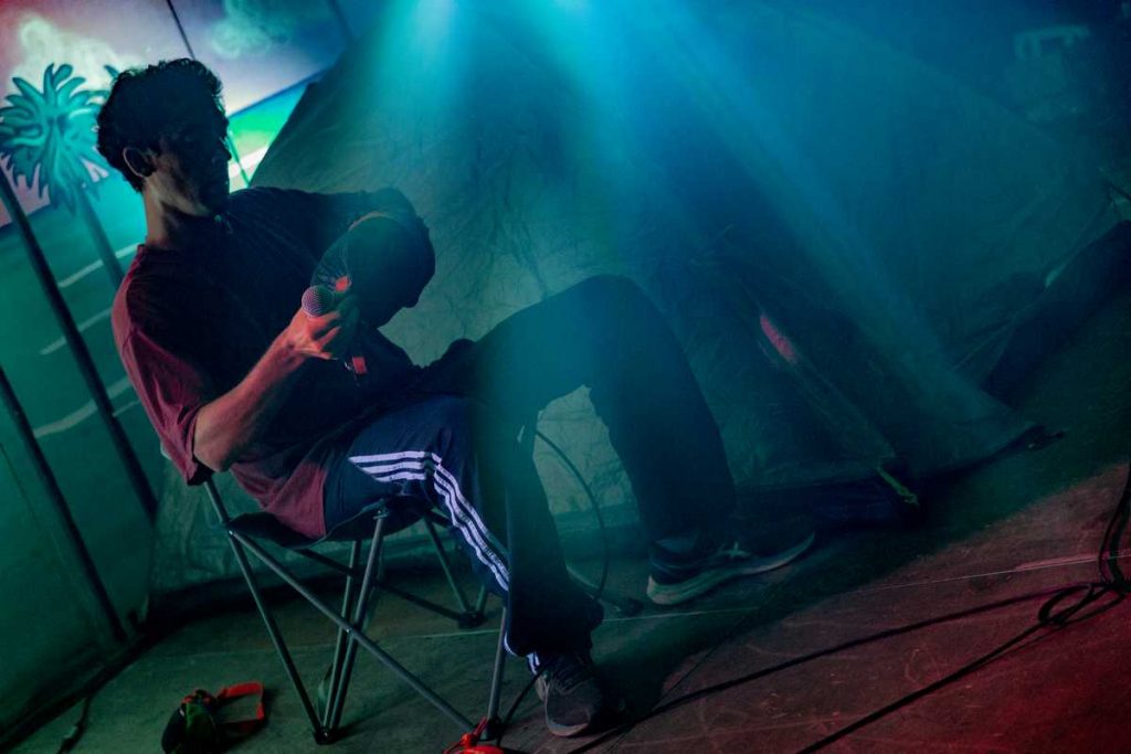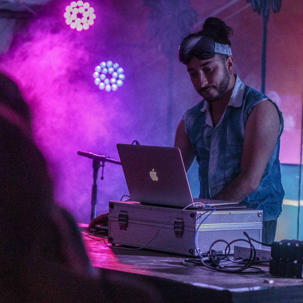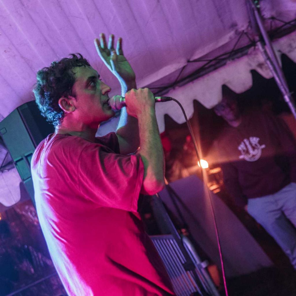 Mr Poulet a ensuite enflammé la petite scène, imaginez un son électro frénétique se mêlant à des percussions vibrantes. Un cocktail explosif qui vous transporte dans un voyage où les minutes s’étirent, l’énergie vous engloutit et le quotidien s’évanouit au profit d’une frénésie collective.