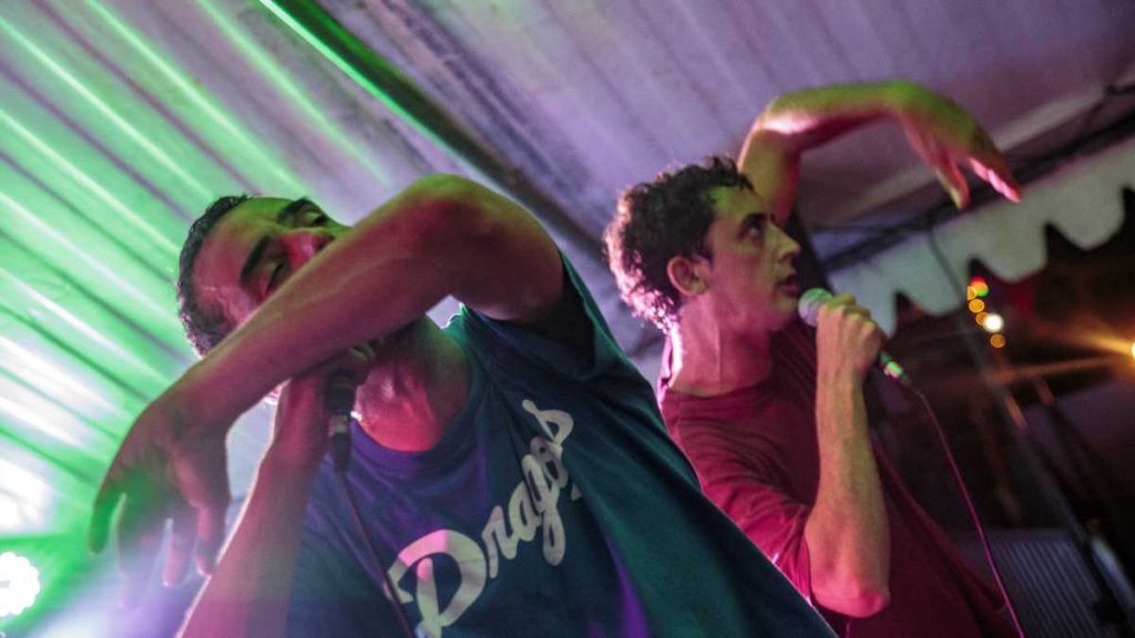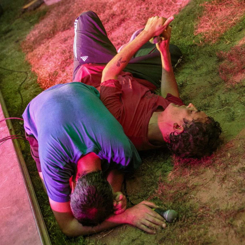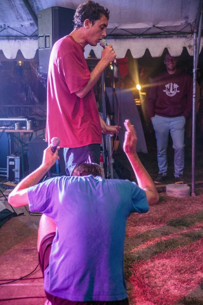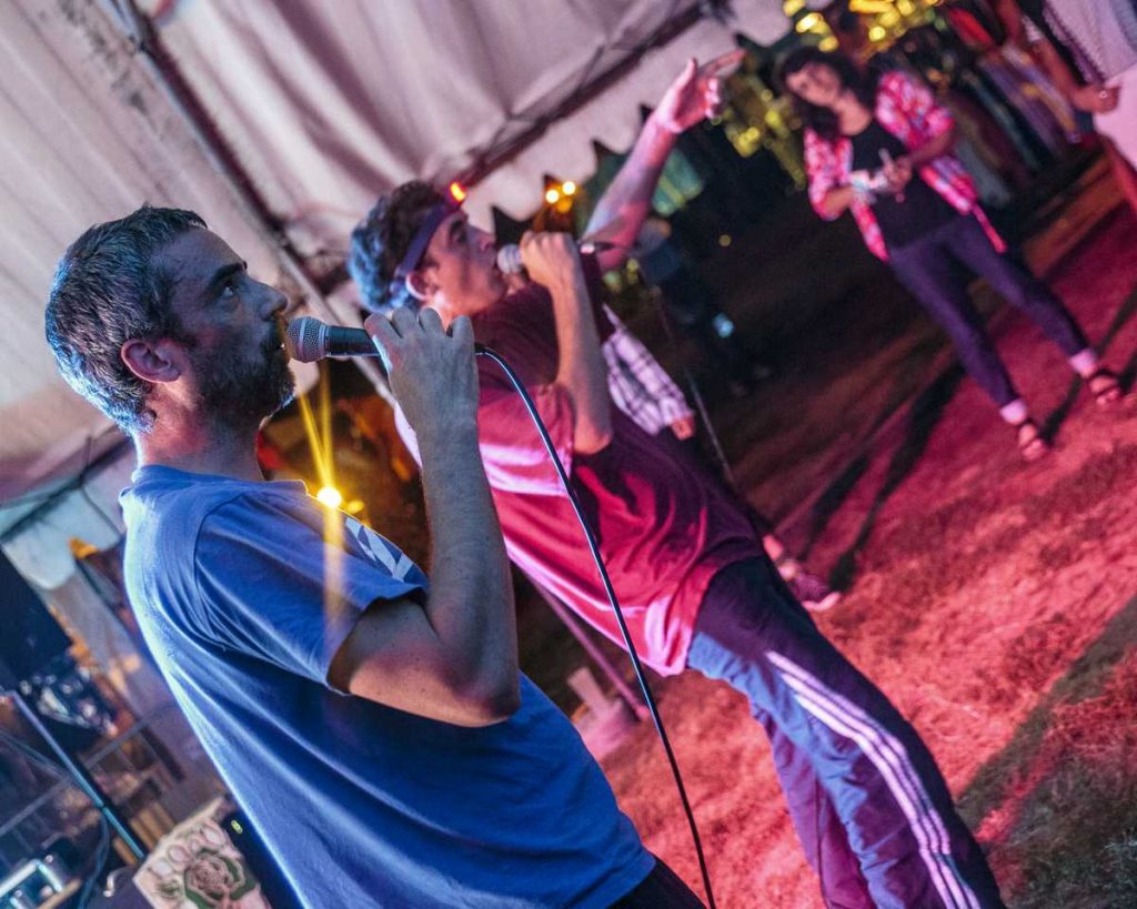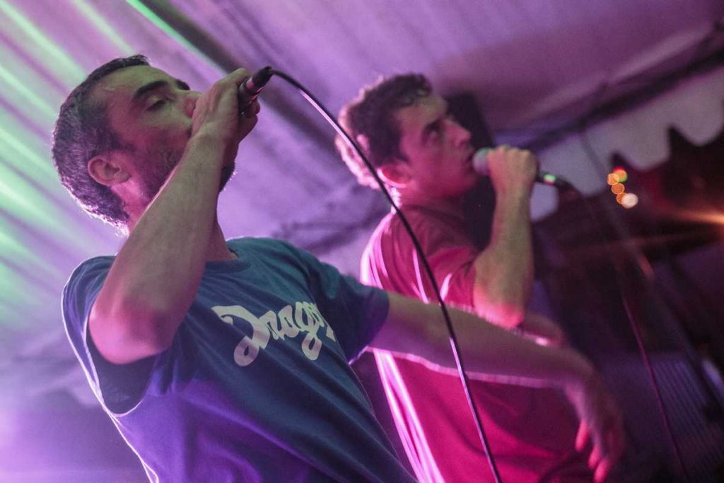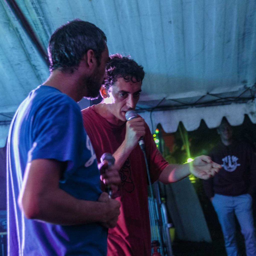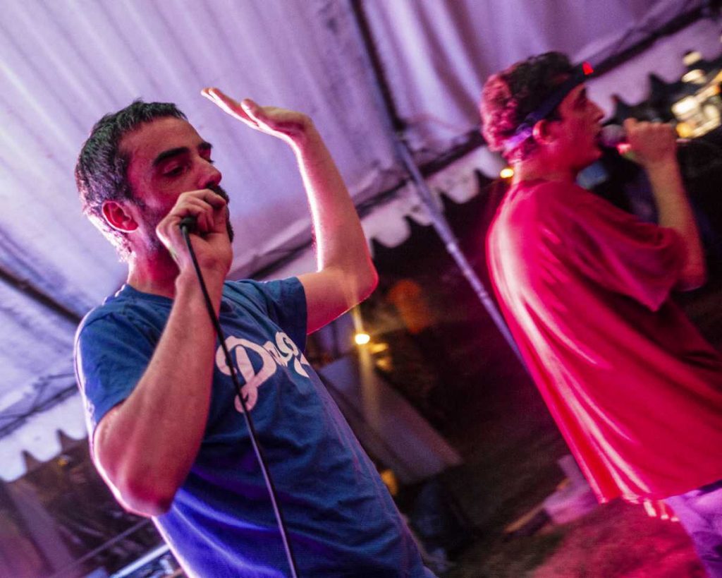 Aux alentours de 20h30, Les Chevals Hongrois ont déferlé sur la petite scène. Un duo grenoblois qui n’avait absolument aucune intention de se soumettre aux conventions du rap. Ils nous ont entraînés dans leur vortex déjanté de rap old school teinté d’humour, armés jusqu’aux dents de micros, ordinateurs, platines et synthétiseurs.