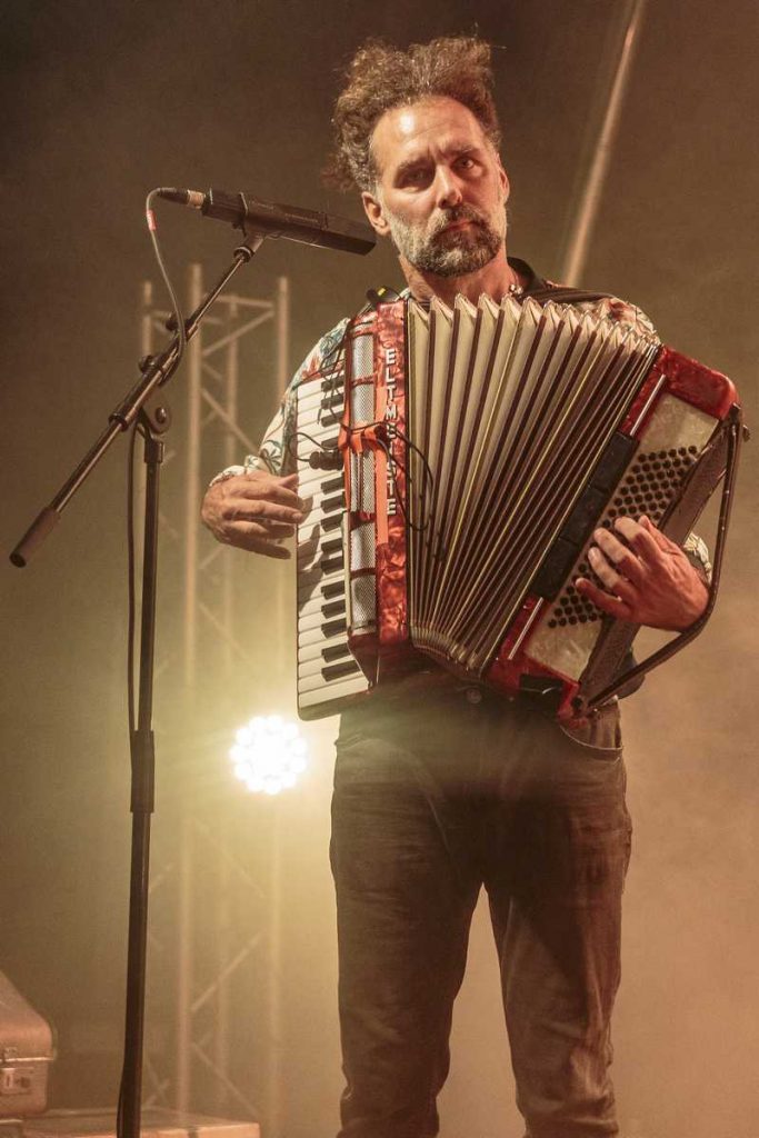 Alors, mes amis, voici la scène : Radio Tutti a fait son entrée sur la grande scène en se frayant un chemin à travers l’arène du festival, déversant sur son chemin une mélopée quasi surréelle. Cette formation nous a entraînés dans un tourbillon de ritournelles du sud de l’Europe, alliant des mélodies populaires italiennes à des beats de deep house et des rythmes de pizzica-transe. C’était une danse frénétique où électro-rock et transe psychédélique se mêlaient, nous entraînant dans une symphonie de traditions et de modernité.