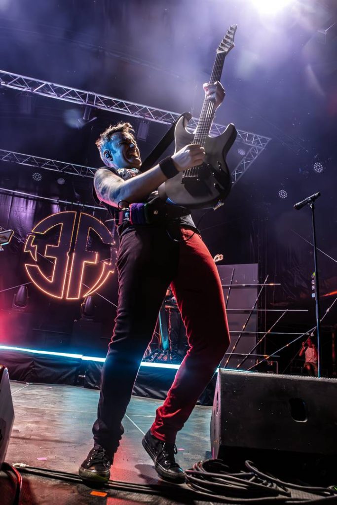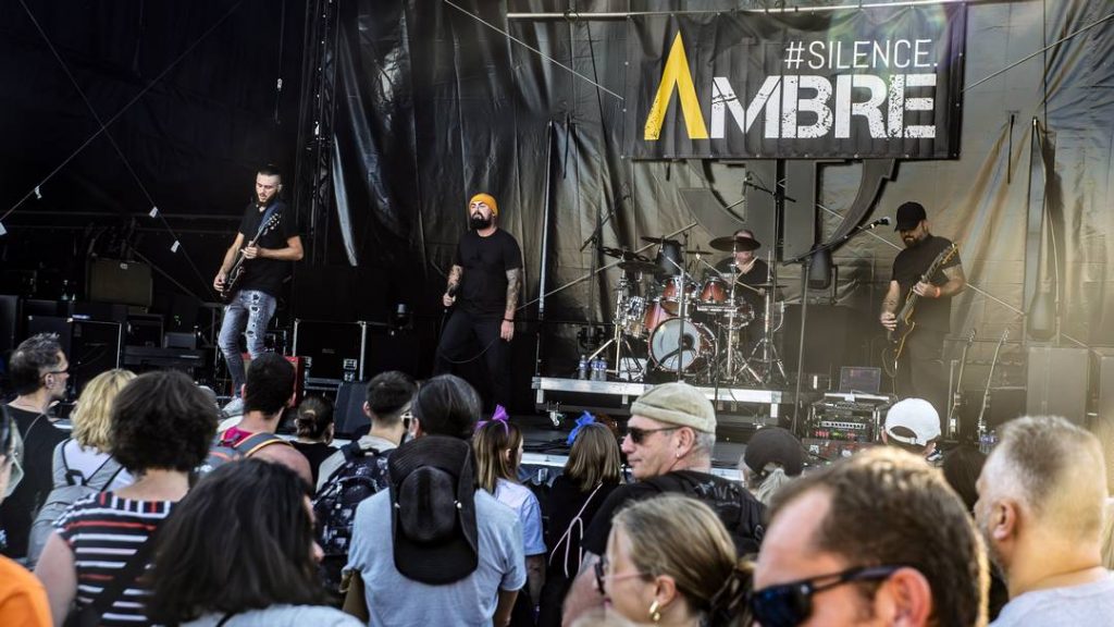 À 18 h 00, en ouverture, nous découvrons Ambre. Ne vous y trompez pas : ce n’est pas le nom de la chanteuse ! De style fusion, un mélange de metal et rap, Sylvain au micro a su chauffer le public. Mais alors pourquoi Ambre ? Lorsqu’on s’intéresse aux textes, vous pouvez observer un message de bien-être et des valeurs comme l’ambre, la pierre précieuse. J’ai été particulièrement touchée par cette répétition de Danser : « La peur l’empêche de bouger, » puis Marre à vous et, ensuite Drapeau blanc. Le groupe se revendique sans étiquette (ni politique, ni syndicaliste) et nous invite à penser par nous-mêmes : j’entends l’appel à se libérer de toute influence, de devenir simplement soi. Quelque chose me dit qu’on entendra encore parler de ce chanteur, compositeur et rappeur au bonnet couleur Ambre, Sylvain, ainsi que de son groupe. J’en profite aussi pour le remercier pour l’accueil et la gestion, car c’est aussi l’un des organisateurs du festival En Mode Festi.