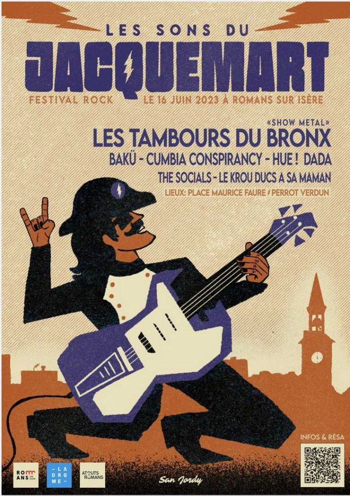 Les Sons du Jacquemart est un tout nouvel événement drômois. La première édition de ce festival né dans l’esprit des commerçants et artisans romanais d’Atouts Romans, se déroulera le vendredi 16 juin 2023 dans le centre historique de la ville de Romans-sur-Isère, dans la Drôme. Il proposera, sur toute l’après-midi et sur la soirée, un « show metal » qui promet de faire vibrer le cœur de la ville. Sur deux scènes, installées entre la place Perrot de Verdun et la place Maurice Faure, vous pourrez assister à une multitude de concerts.