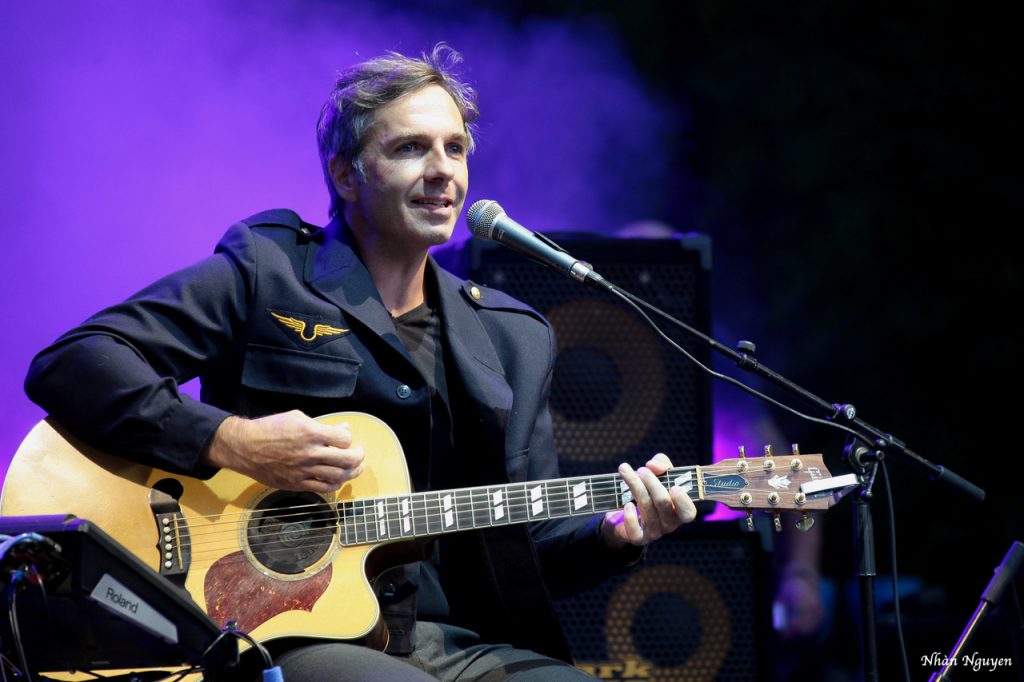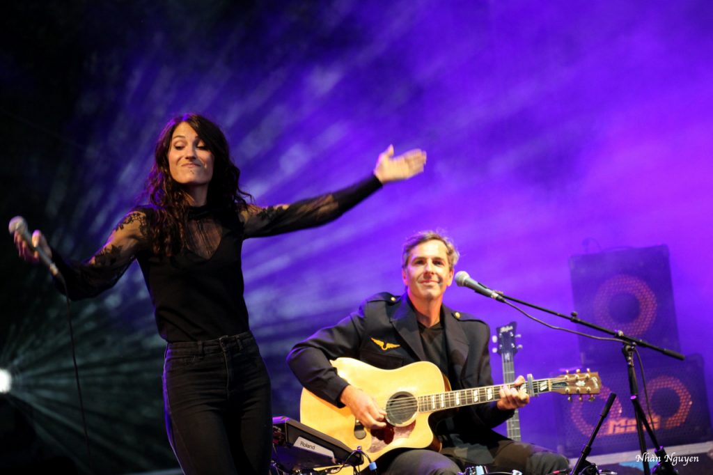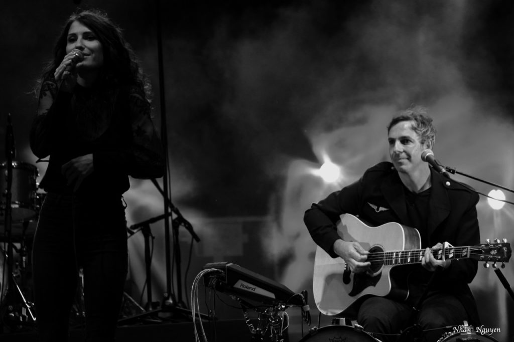 En première partie, Marion Elgé, qui mène en parallèle une carrière artistique et musicale , ainsi que le partage avec les enfants de ce qu’elle aime faire : l’écriture et le chant. Mais, ce soir, sa voix douce berce bien avec la verdure du parc du château de Freycinet. Si la Femme Amazone Penche pour l’Aviateur, elle ne tombe pas pour autant à L’Eau, surtout accompagnée par David Granier aux batterie et guitare, lequel ne la perd pas des yeux. Sa prestation de ce soir est digne de notre représentante à l’Eurovision avec qui elle partage une reprise qui parle d’un homme heureux, une Icone que je vous laisse chercher, écouter et « liker » pour ses textes de femme et la douceur de sa voix.