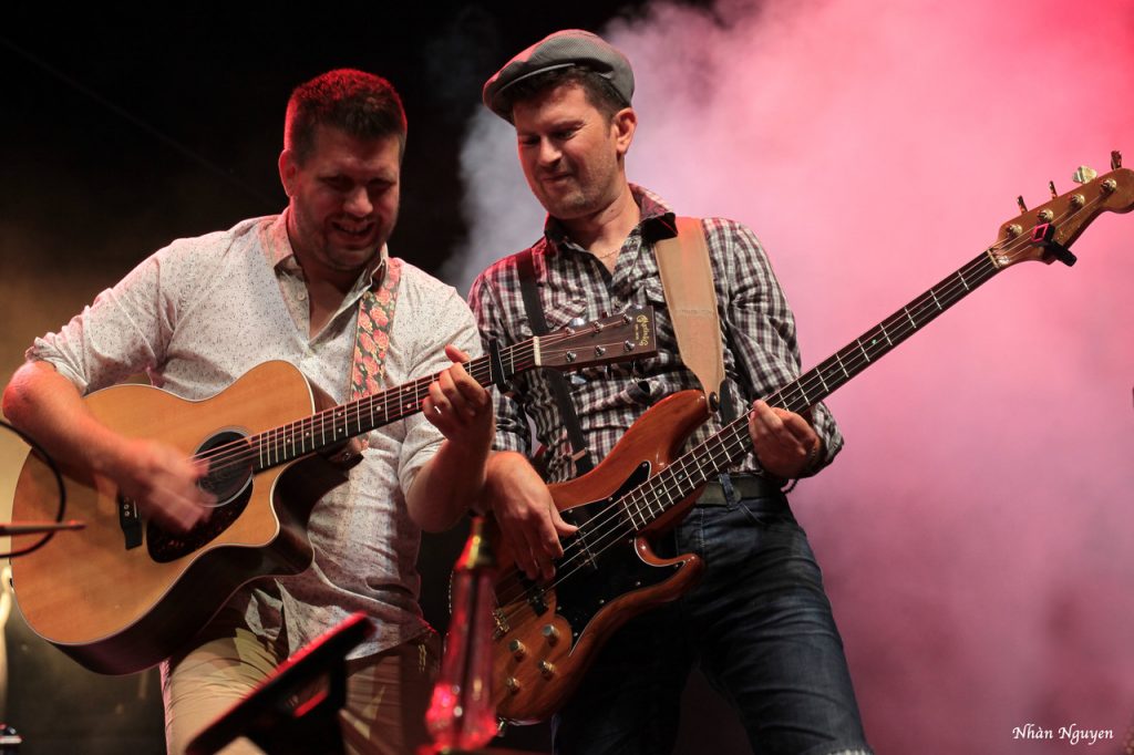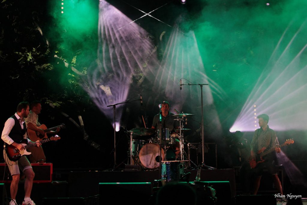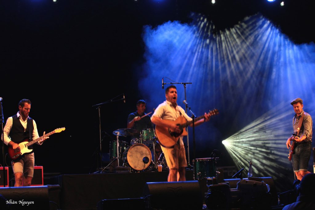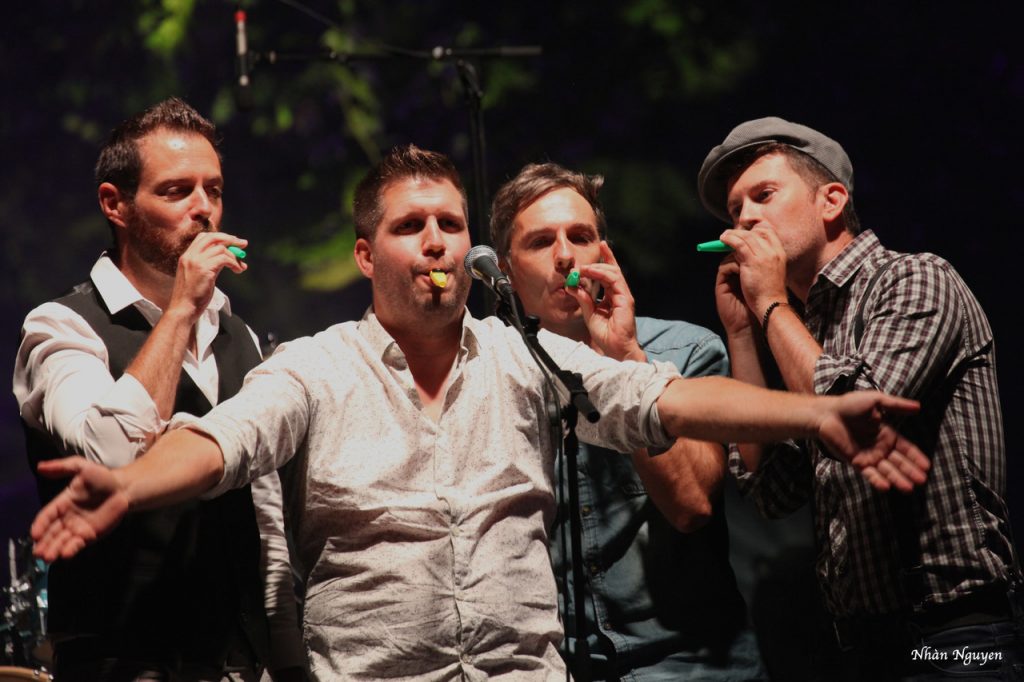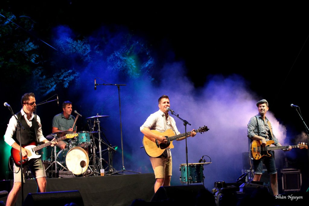 Pour la deuxième partie, et quelle partie ! Ils ont laissé leurs tracteurs dans le hangar et ont transformé le podium du château en grange pour nous dire qu’ON N’EST PAS SORTI DE LA GRANGE (ONPSG). Avec un rythme délirant, ils ont fait du foin sur la pelouse du château. Du rock ‘n roll aux paroles complètement paysannes, à l’humour qui fait aimer ceux qui travaillent dur pour nous nourrir et nous faire sourire. Quatre garçons dans « la paille » ont fait honneur à notre campagne et on étét ce soir les rois du Château de Freycinet.