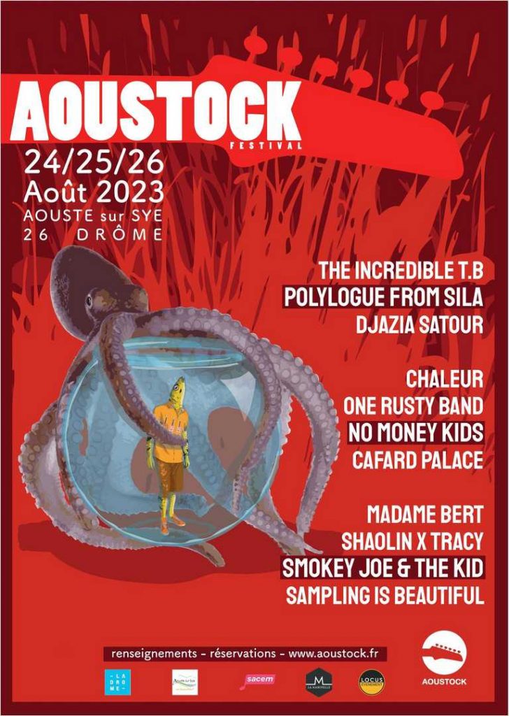 Hop ! Hop ! Hop ! Aujourd’hui, nous avons découvert que la programmation de l’Aoustock Festival avait enfin été annoncée. Aoustock Festival est un événement un peu différent des autres. Oui, bien sûr, vous y verrez des concerts, vous y trouverez un bar et des food-trucks pour vous abreuver et vous sustenter, ce qui est un peu le concept du festival musical. Non, vous n’y trouverez pas des artistes que l’on peut voir tout le temps partout, mais vous y trouverez des artistes des plus talentueux ! L’édition 2023 de l’Aoustock Festival se tiendra sur trois soirées, du jeudi 24 au samedi 26 août, dans la petite ville drômoise d’Aouste-sur-Sye. Et sur ces trois soirées, vous pourrez assister à pas moins de onze concerts ! Nous vous en présentons maintenant la programmation.