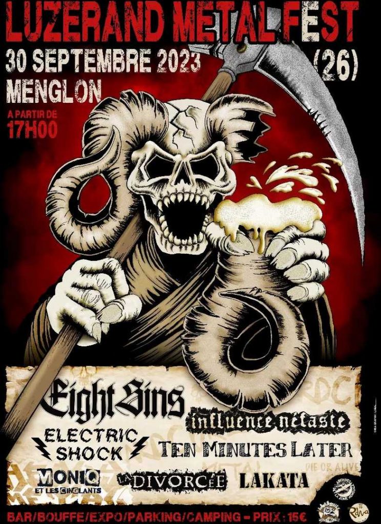 C’est le samedi 30 septembre 2023 que se déroulera, à Menglon, dans la Drôme, la nouvelle édition du Luzerand Metal Fest. Comme son nom nous l’indique si bien, il s’agit d’un festival de Metal organisé par « une bande de copains fans de musique bruyante ». Il se déroulera sur une soirée et proposera pas moins de sept concerts. L’ouverture des portes se fera à 17 heures et vous pourrez tout trouver sur place pour vous abreuver et vous sustenter. Et vous pourrez aussi assister à des expositions et camper sur place ! La participation aux frais de cet événement s’élève à 15 euros.