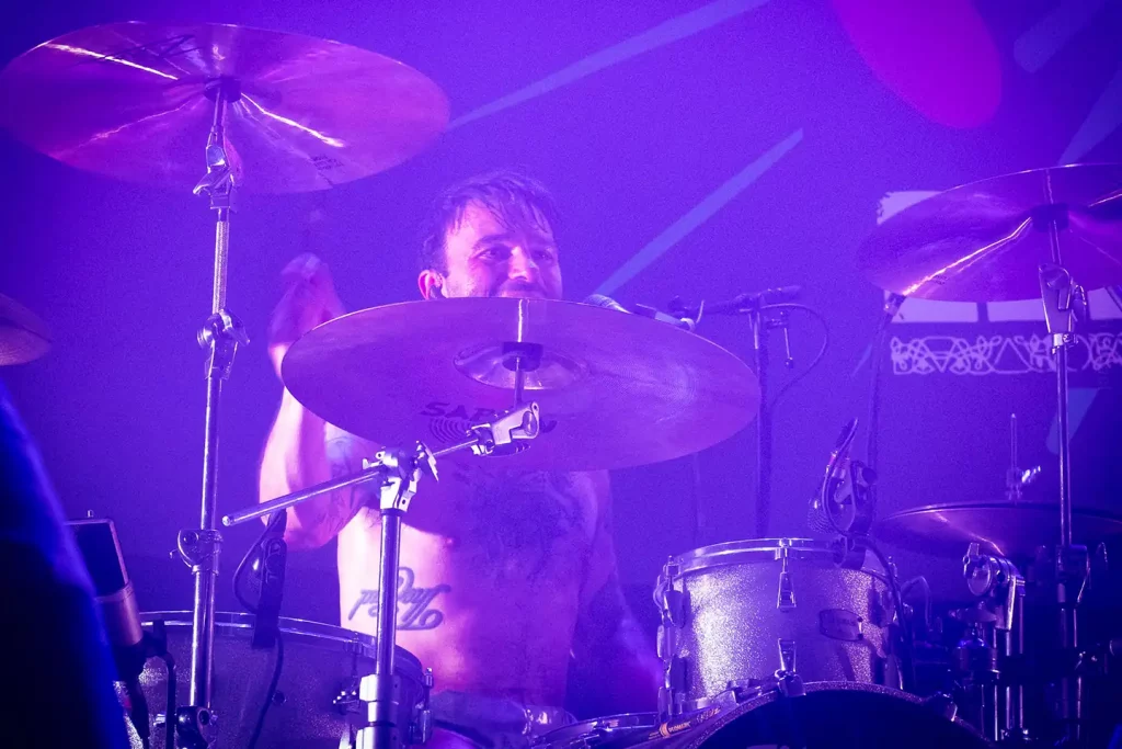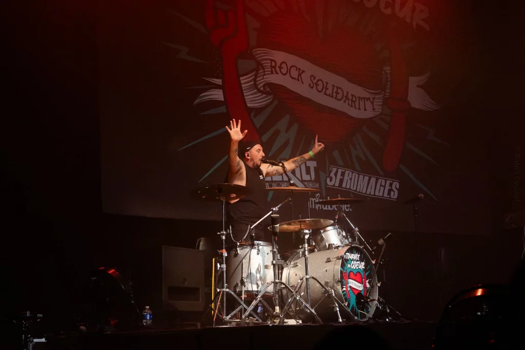 Drick sépare la salle en deux et lance une compétition pour savoir quel côté chantera le plus fort puis nous avons droit à un solo de batterie pour l’heure des remerciements à leur équipe, à mirabelle aux 3 fromages par avance, aux équipes de La Rayonne, aux chauffeurs des tourbus et au sixième membre du groupe : le public !