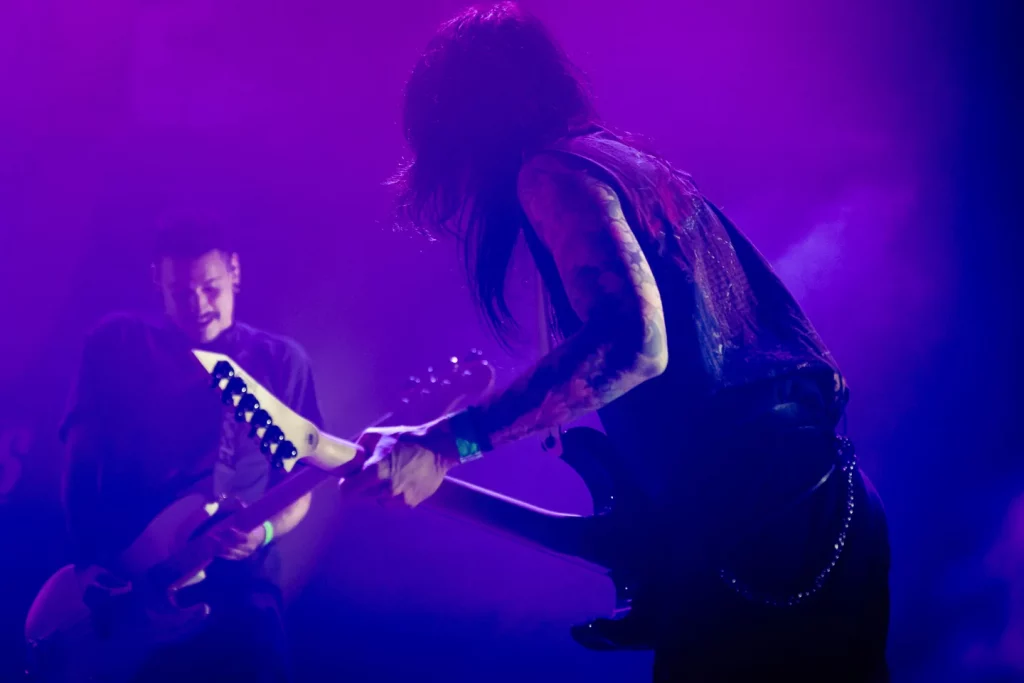 20 h 02 : Il ne reste que trois chansons ! Ils ont ressorti les guitares méchantes et font un appel aux Metalleuses et Metalleux de la salle. Un joyeux moshpit s’est déclenché dans le public !