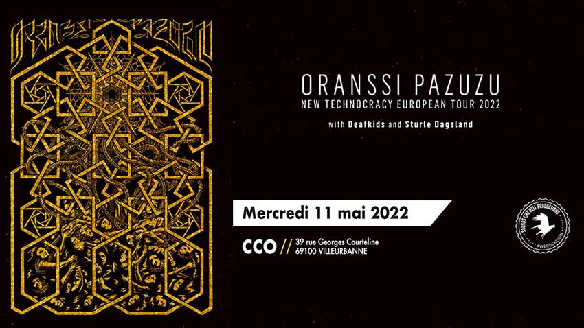 ![]() ORANSSI PAZUZU + DEAFKIDS + STURLE DAGSLAND // Mercredi 11 mai au CCO – Villeurbanne ORANSSI PAZUZU revient à Lyon mercredi 11 mai ! Le groupe de Black Métal Psychédélique plongera le CCO au cœur d’un kaléidoscope tourbillonnant et sera accompagné par DEAFKIDS et STURLE DAGSLAND. ► Tickets ◄ |