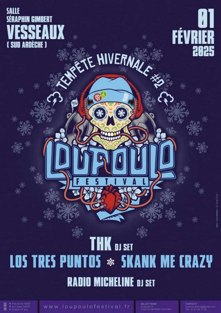 C’est le samedi 1er février 2025 que se déroulera, de 18 h 00 à 2 h 00, à la salle Séraphin Gimbert de Vesseaux, dans l’Ardèche, la deuxième édition de la Tempête Hivernale qu’organise l’équipe du Loupoulo Festival. Au programme, nous aurons droit à pas moins de deux DJ sets et deux concerts. Tout sera disponible sur place pour vous ravitailler en nourriture et boissons. L’accès à l’événement vous reviendra à 15 euros si vous réservez et à 20 euros au guichet le soir même.