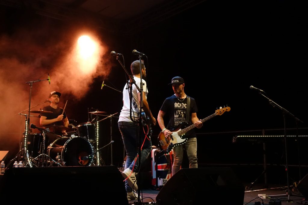 La météo favorisant la nuit montante, ce fut au groupe venu du Gers, Graines de sel, de monter sur scène. Ce collectif gascon souriant, positif, énergique, aux multiples influences métissées, a su très vite faire avancer au pied de la scène le public, pour le mettre en liesse, répartissant ainsi les plaisirs de la vie, du chant, de la danse, des applaudissements exprimant l’envie forte de partager le voyage musical offert par Graines de sel. Le voyage musical nous emmena de la mer, aux vallées de l’Afrique ou près des collines irlandaises, mais pas que. Le live des Gascons a conquis le festival, avec les textes fins, acérés de Kevin le chanteur, de l’énergie de l’accordéon de feu de Mailys, et du saxophone mystique de l’homme au kilt Rémy. Les Gascons ont conquis le festival au fil de la nuit. Puis pour clôturer cette 6e édition positive, ce fut au groupe Leventon de mettre le tour de clé final, et il le fit de la meilleure manière musicale. Le trio pop rock drôme-ardéchois, composé de Maxim, Julien et David, de par sa qualité de jeu instrumental, est devenu, au fil des années, une valeur sûre pour la scène musicale. Le public, là non plus, ne s’y est pas trompé, et des reprises britanniques de rock, de Queen ou des Beatles, ou leurs propres compositions, le set proposé fut complet pour finir la soirée en beauté. Toutes les bonnes choses ont une fin, les artistes ont tout donné, les organisateurs, les techniciens, les bénévoles, tous bienveillants, ont su : avant, pendant, après, faire de cette sixième édition une pleine réussite. Comment se hasarder à dire, après ça, qu’il y a des « petits » festivals ! En tout cas, que tous ces acteurs en soient fiers et en soient remerciés. Respect ! Chapeau bas !