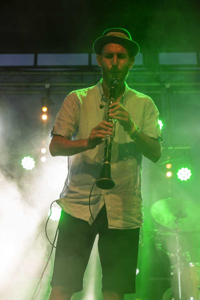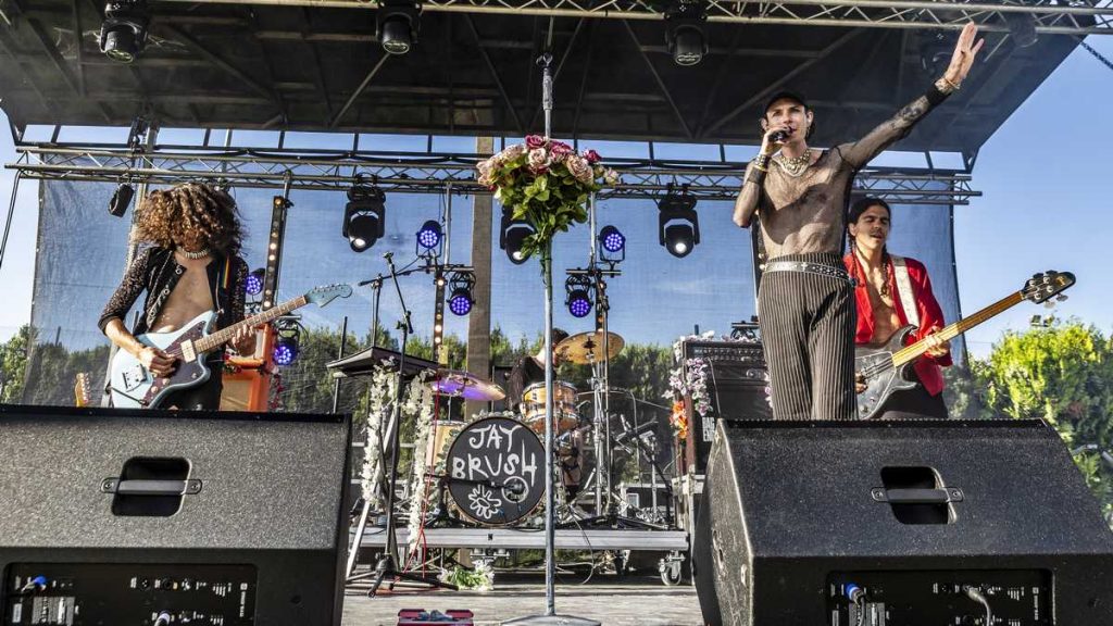 Puis sont arrivés sur scène les Lyonnais de Jay Brush. Dès les premières notes, nous avons bien compris que l’ambiance serait teintée de folie. Ils nous ont délivré, sous un ciel d’azur immaculé, un set résolument rock et d’une énergie contagieuse. D’emblée, le public a suivi le mouvement et s’est précipité sur le dancefloor malgré les fortes températures. Nous ne connaissions pas Jay Brush mais force est de constater que ce fut un plaisir de les découvrir.
