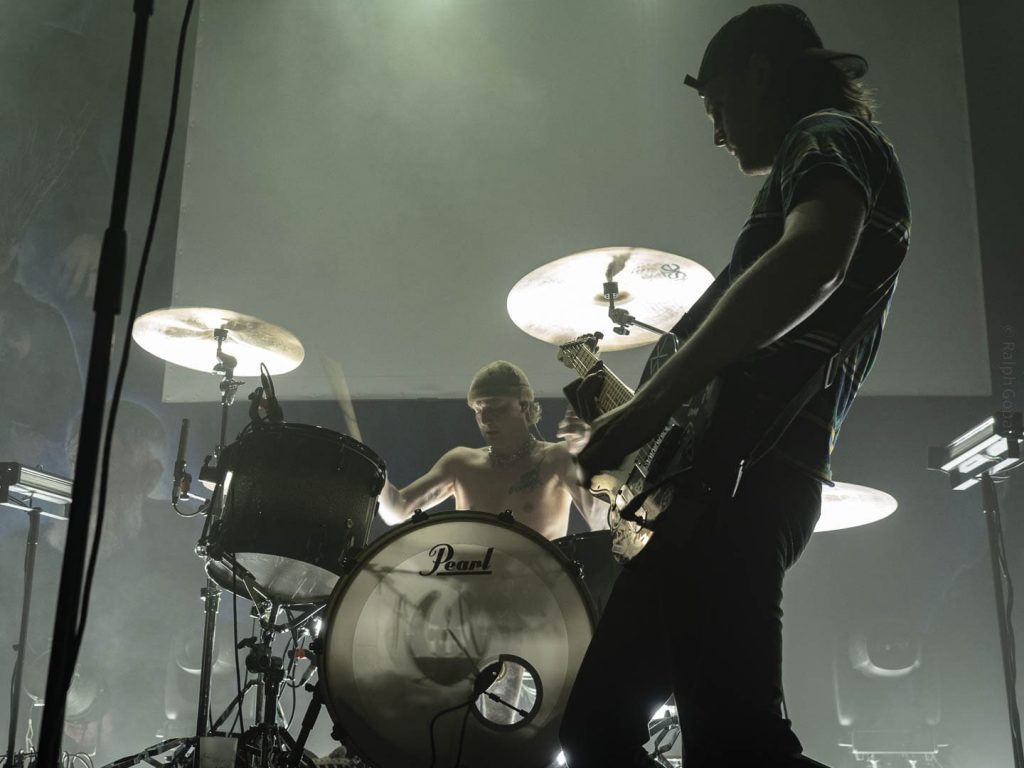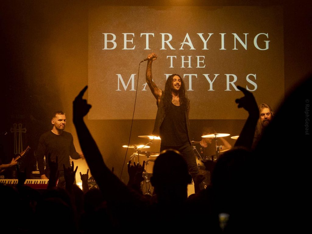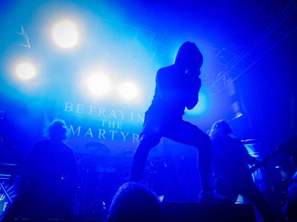 20 h 44 Noir sur la salle ! Betraying The Martyr arrive sur scène, à commencer par leur batteur, suivi des cinq autres.