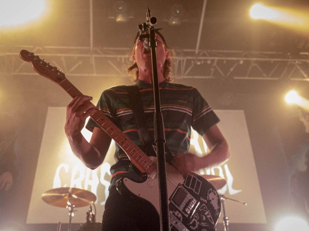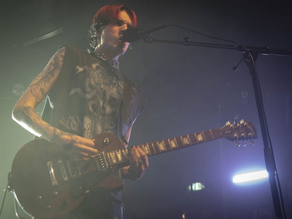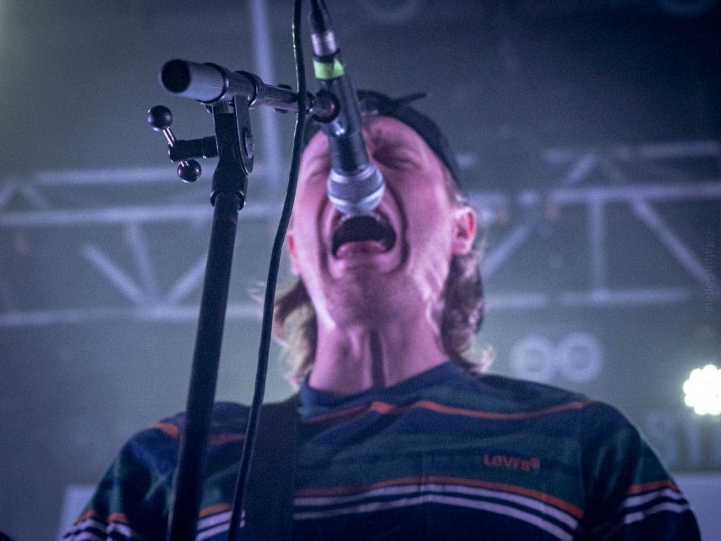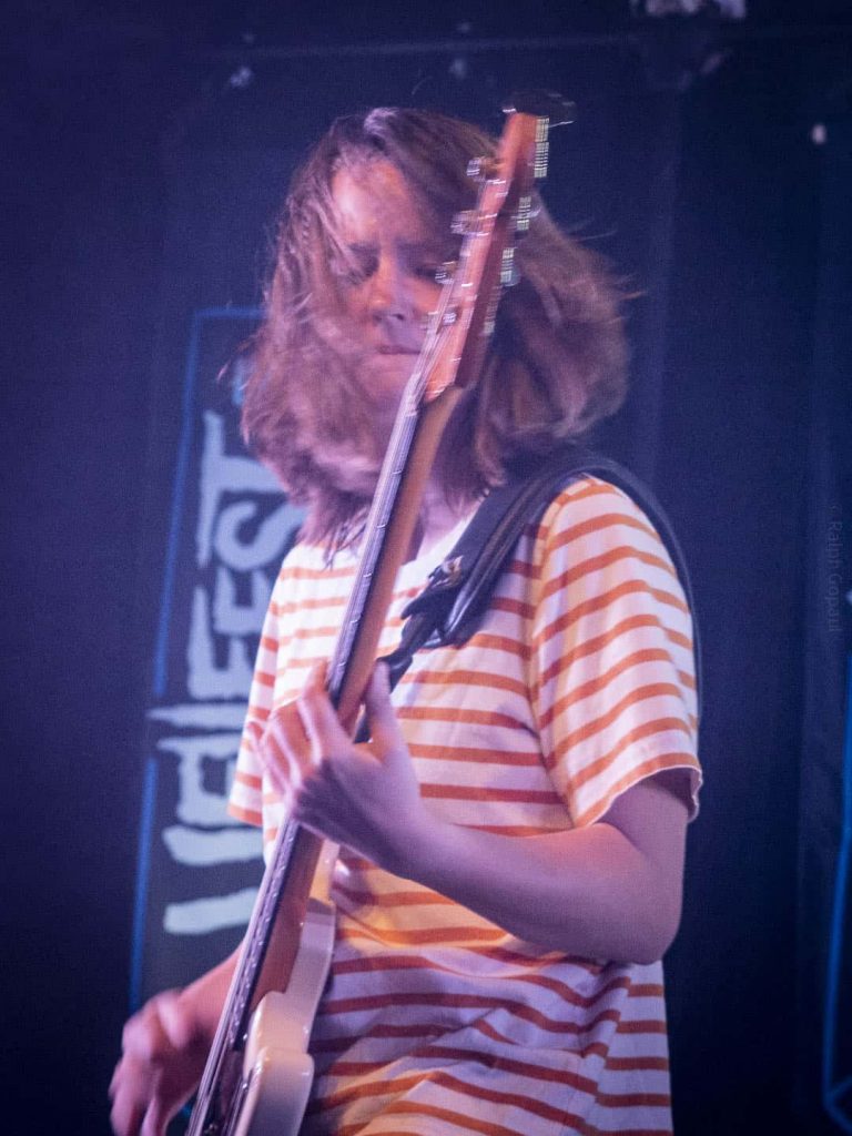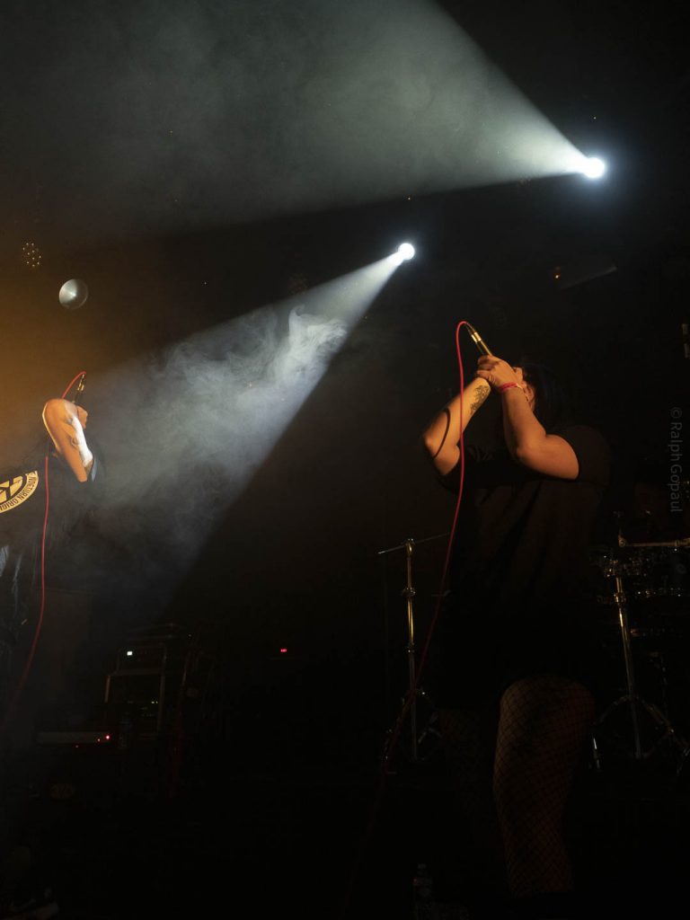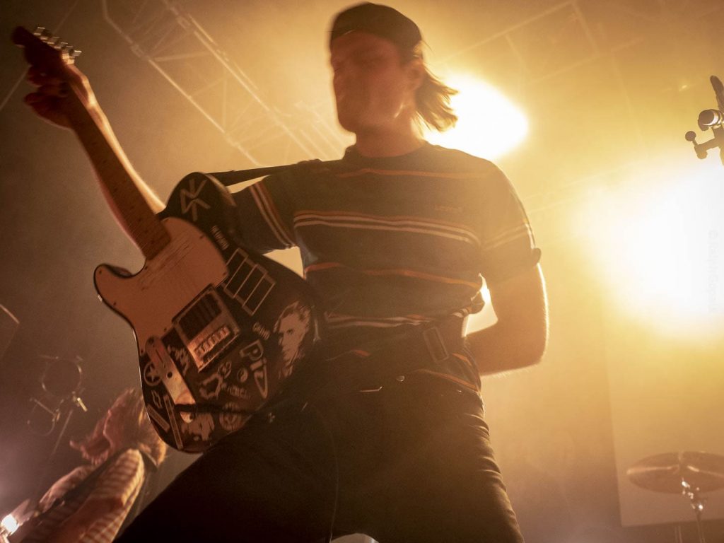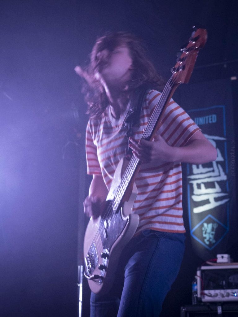23 h 05 ils attaquent leur set ! Malgré l’heure avancée pour un soir de semaine ça pogote sec devant la scène ! Et Nicolas, le bassiste, descend jouer au milieu des pogoteurs !